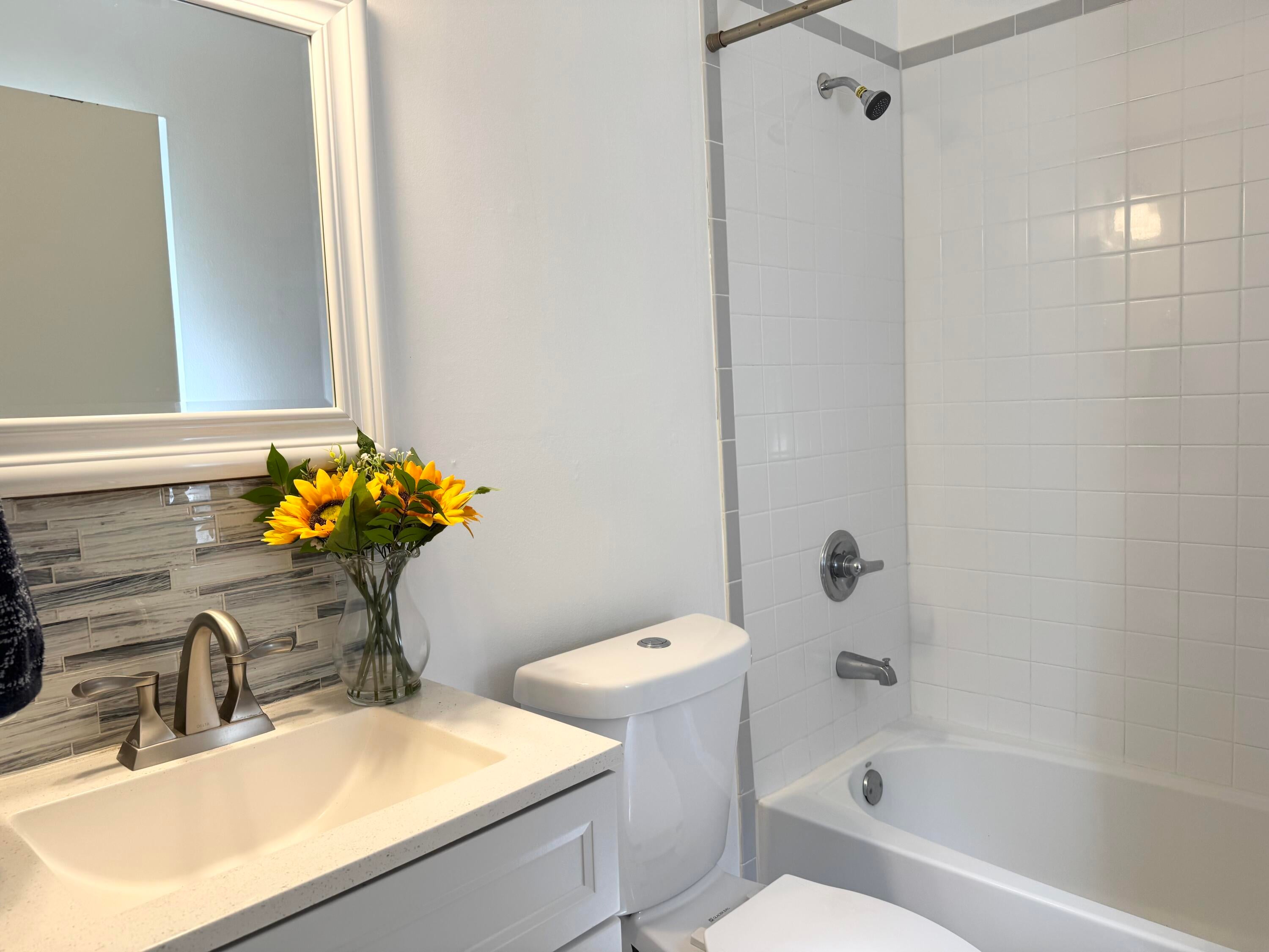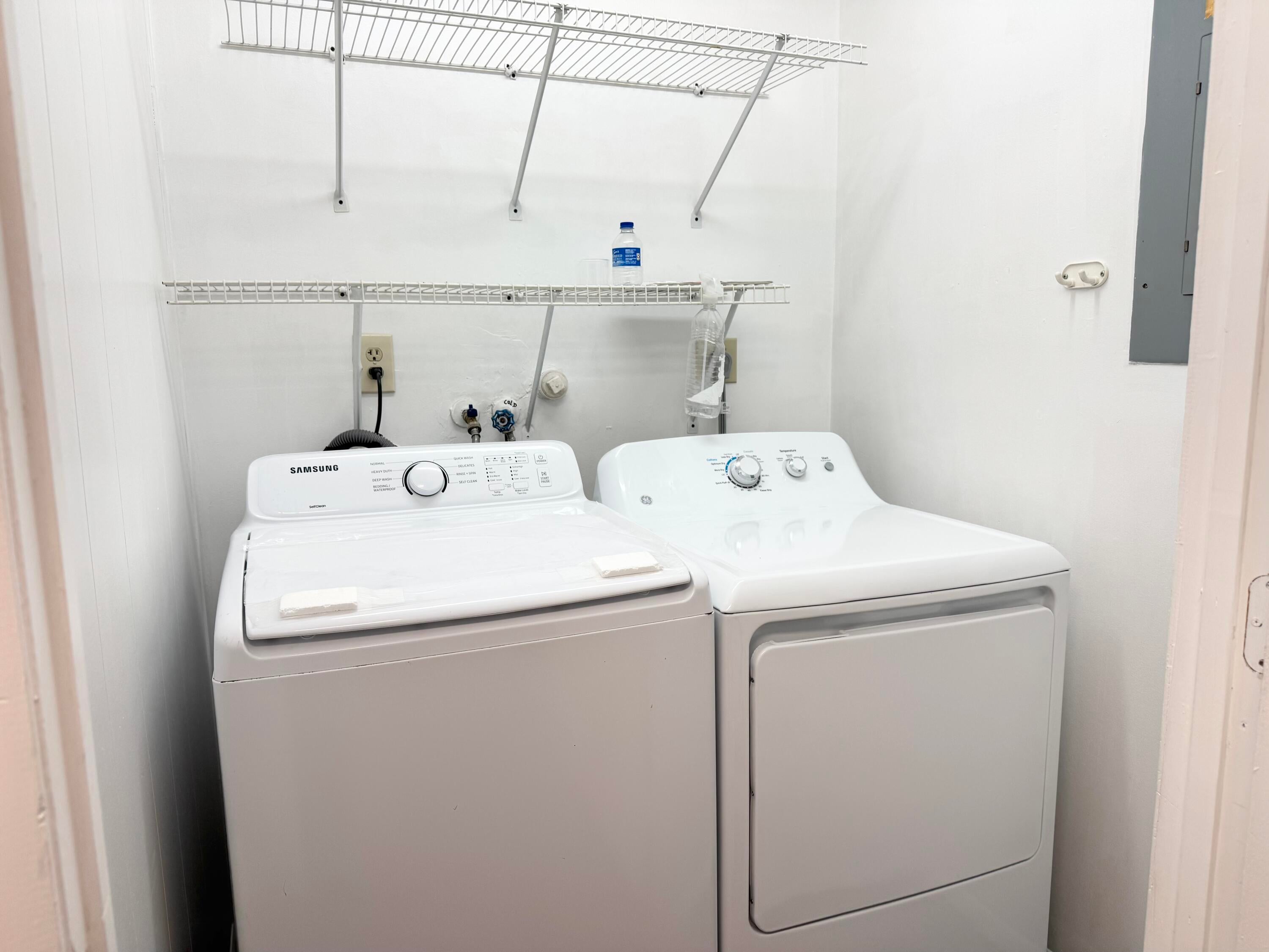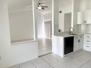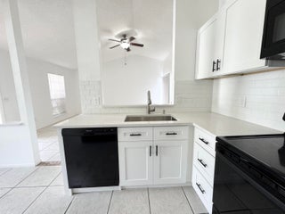 Charming single-family home with an open, bright interior. This 2-bedroom, 2-bathroom residence features an inviting eat-in kitchen complete with brand-new cabinetry, quartz countertops, and modern appliances. The primary bedroom offers ample storage, and the living area opens to a deck overlooking an oversized, fully fenced lot--ideal for privacy and outdoor enjoyment. Additional highlights include a washer and dryer located in the garage and accordion hurricane shutters for enhanced protection. Conveniently situated near shopping, dining, and Palm Beach International Airport, this home provides a blend of comfort and accessibility.