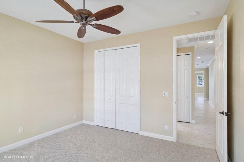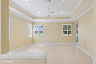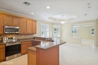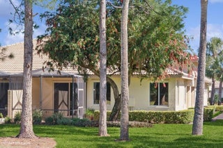 CHECK OUT THIS SPECTACCULAR GOLF VIEW! This townhouse is located in PGA Village and offers 2 bedroom plus a large flex room or den, 2 full baths and 2 car garage. Spacious open kitchen has granite counters, 42in cabinets, tumbled marble back splash & stainless appliances. The split bedroom concept offers plenty of privacy. A bright airy living room has sliding glass doors that leads out to the screened covered lanai where you can enjoy your morning coffee. Soak in the views of nature and The Legacy Golf Course. HOA includes cable, internet, roof cleaning, exterior painting, lawn maintenance & full access to the ISLAND CLUB which offers a host of activities & events.