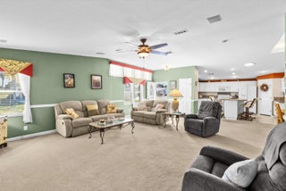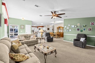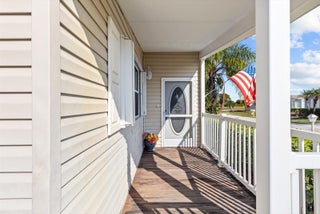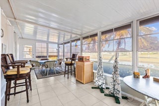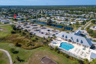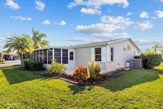 Bright and inviting, this 2-bed, 2-bath home with a den/office offers 1,880 SF of comfortable living in the amenity-packed Savanna Club 55+ community. The split-plan layout features a great room plan with island kitchen, spacious living areas, and an enclosed, tiled lanai overlooking a tranquil lake--perfect for relaxing and a short walk across the street to the Eagles Landing clubhouse, fitness center, 10,000sf theatre and pool. A 2-car garage, + a large storage shed, and irrigation well add everyday value and convenience. Enjoy peace of mind with a 2018 roof, 2021 A/C, and accordion shutters. Fully furnished and move-in ready for seasonal escapes or full-time living, this home blends value, comfort, and resort-style amenities in one exceptional package. Land Lease Property
