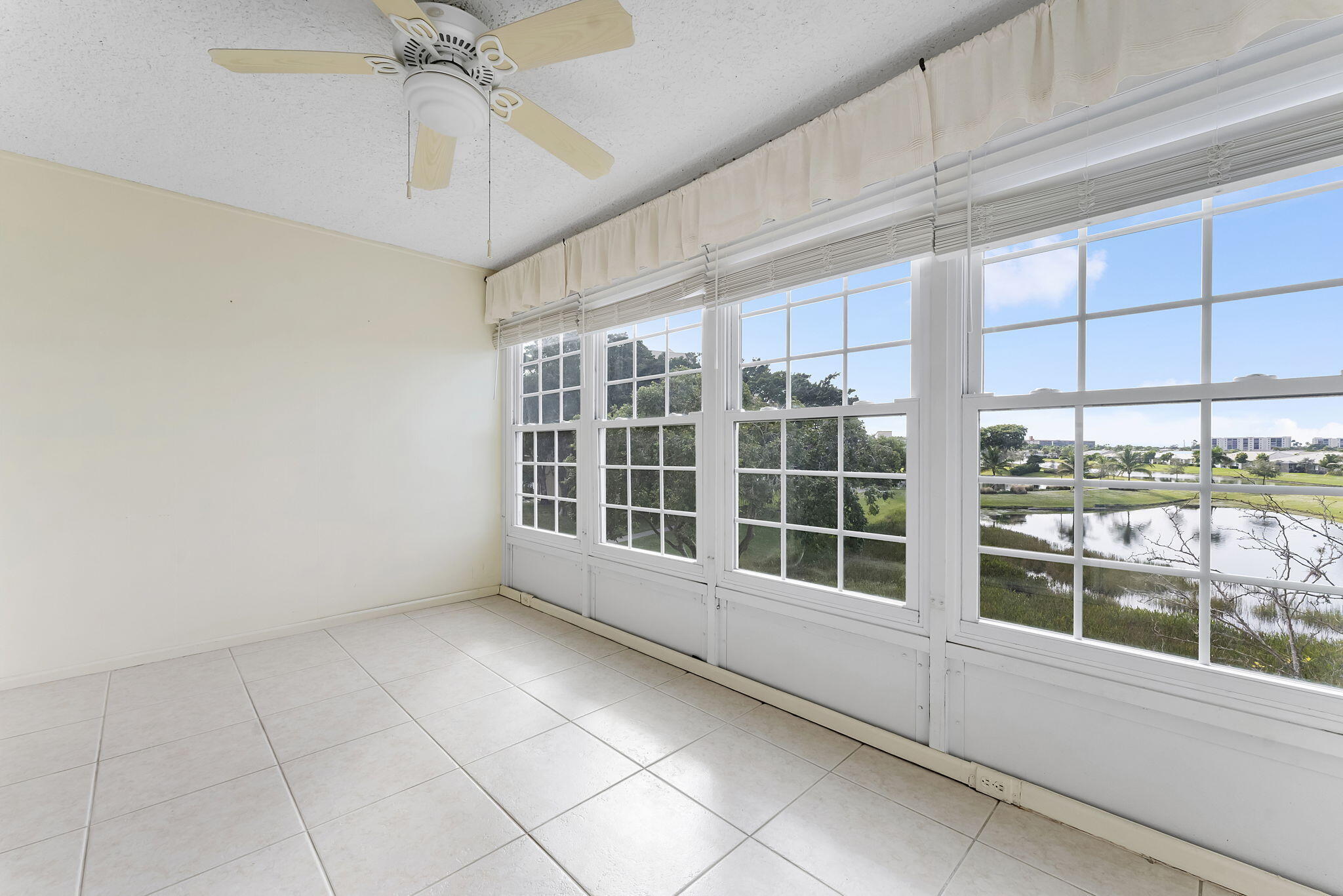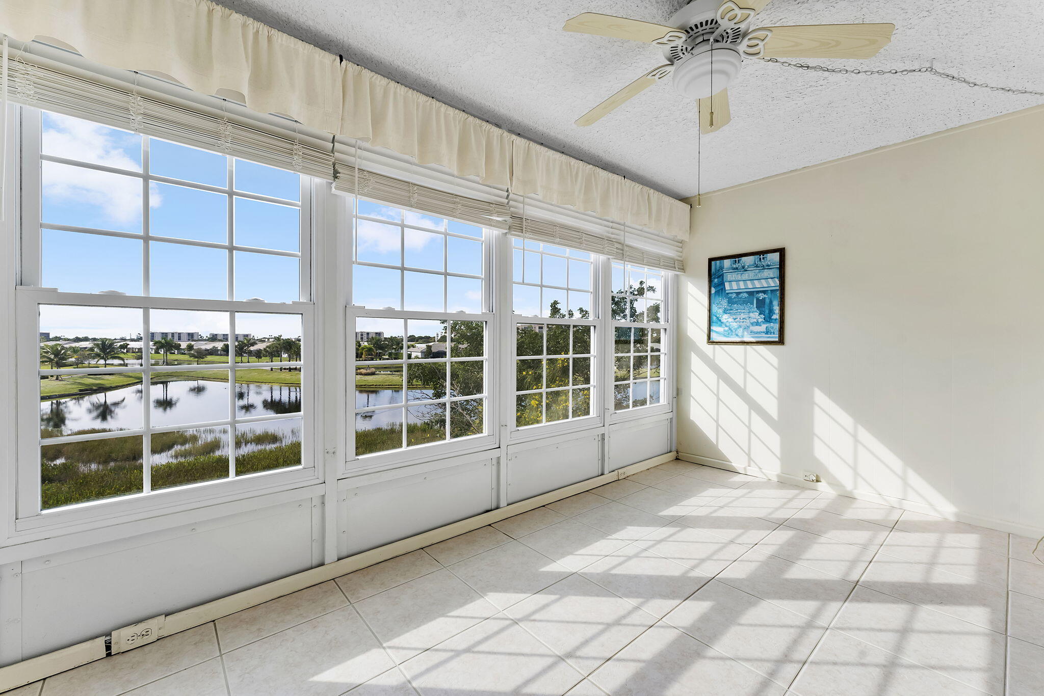 This bright and charming 1-bedroom, 2-bath condo offers serene lake views with an abundance of natural light. The spacious enclosed Florida room features panoramic impact windows to enjoy the scenery. Tasteful updates throughout, including neutral tile flooring. Eat in kitchen with wood cabinets and granite countertops. The open living and dining areas provide a comfortable layout, while the primary suite includes a large walk in shower. Close to elevator and storage unit.Located in beautifully maintained Bonaire Village, residents enjoy access to a great clubhouse complete with a resort-style pool, social areas, fitness center and a variety of amenities designed for an active adult lifestyle.Centrally located in Delray Beach perfect for year-round residence or seasonal retreat!