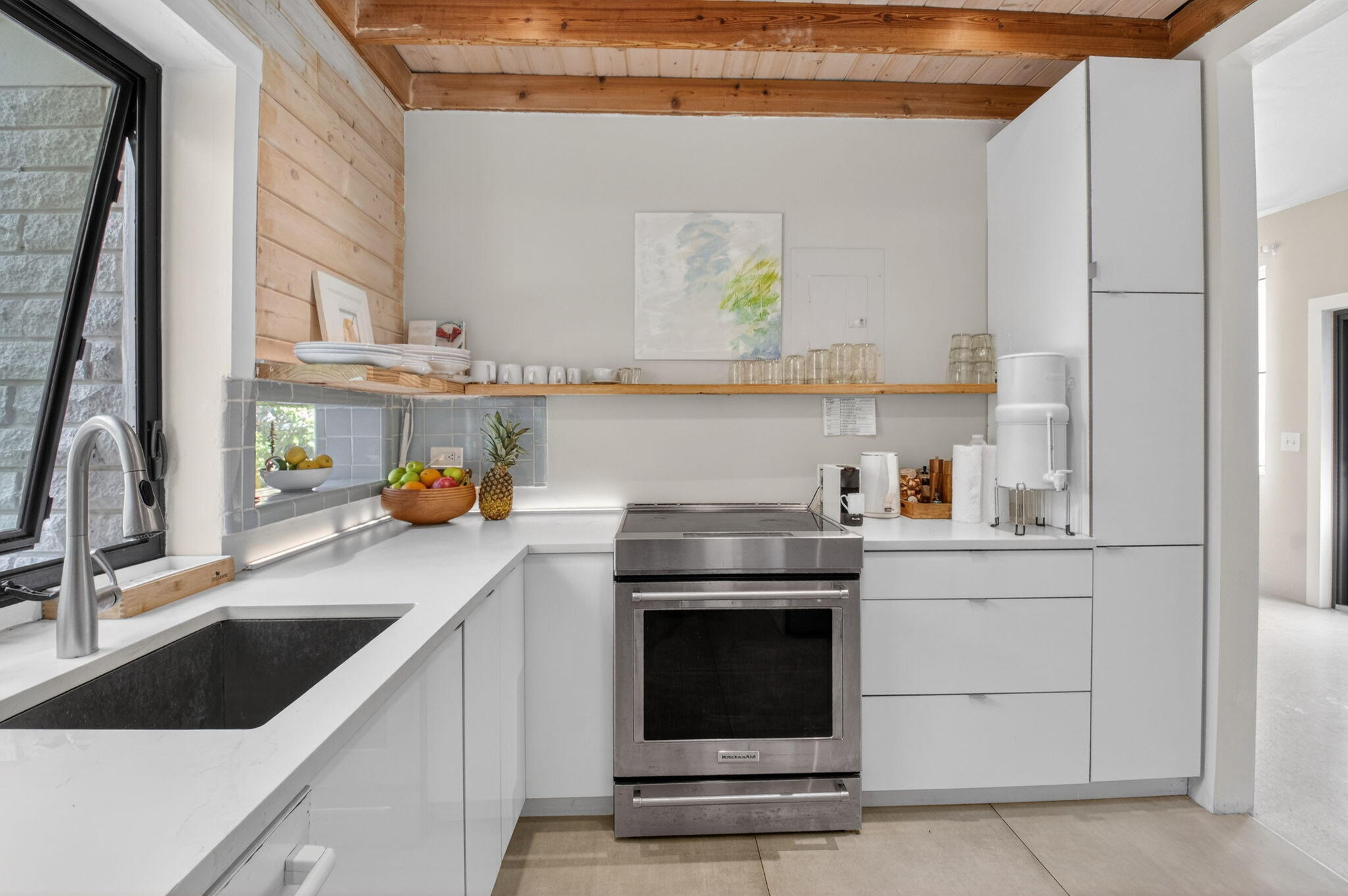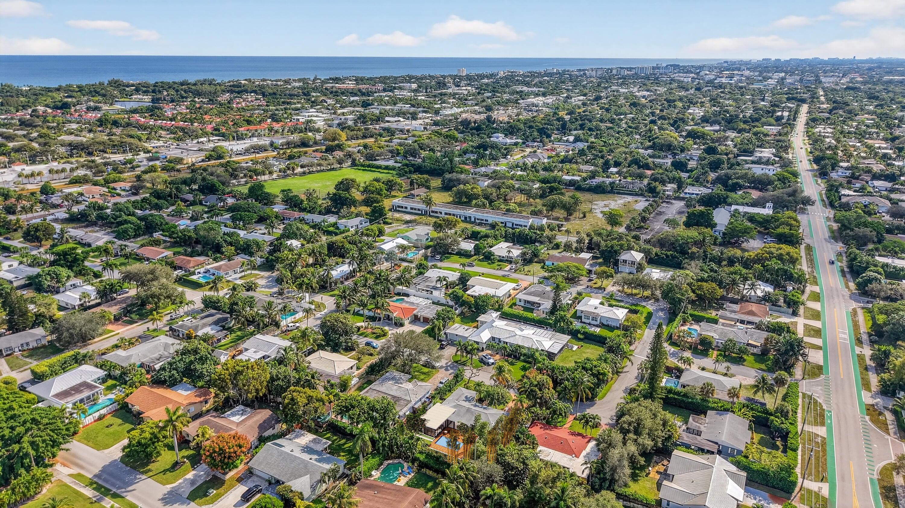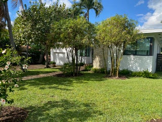 Discover this mid-century modern gem located in highly desirable East Delray, nestled in a charming non-HOA neighborhood. This light and bright home features high ceilings and a blend of terrazzo, hardwood, and tile flooring for timeless appeal. The updated kitchen (2020) boasts synthetic marble countertops, an induction range, and generous prep space, blending modern style with exceptional practicality. The primary suite includes an ensuite bathroom with a newer vanity and sink. Enjoy peace of mind with impact windows and garage door, new AC, gas hot water heater, new washer/dryer, access to natural gas line in the kitchen and a 6-zone sprinkler system. The 1-car garage is air-conditioned for added versatility. The backyard is fenced to ensure privacy with photo renderings that provideideas for possible home addition and pool. Location is everything, and this property delivers just minutes from vibrant downtown Atlantic Avenue and Pineapple Grove, where you'll find world-class dining, shopping, and nightlife. The beach is only a short bike ride or drive away, allowing you to enjoy the best of Delray's coastal lifestyle with ease. Whether you're seeking a full-time residence, a vacation getaway, or an income-producing investment, this home presents endless possibilities in an unbeatable location. Don't miss this rare opportunity to own a classic piece of East Delray Beach living close to it all.