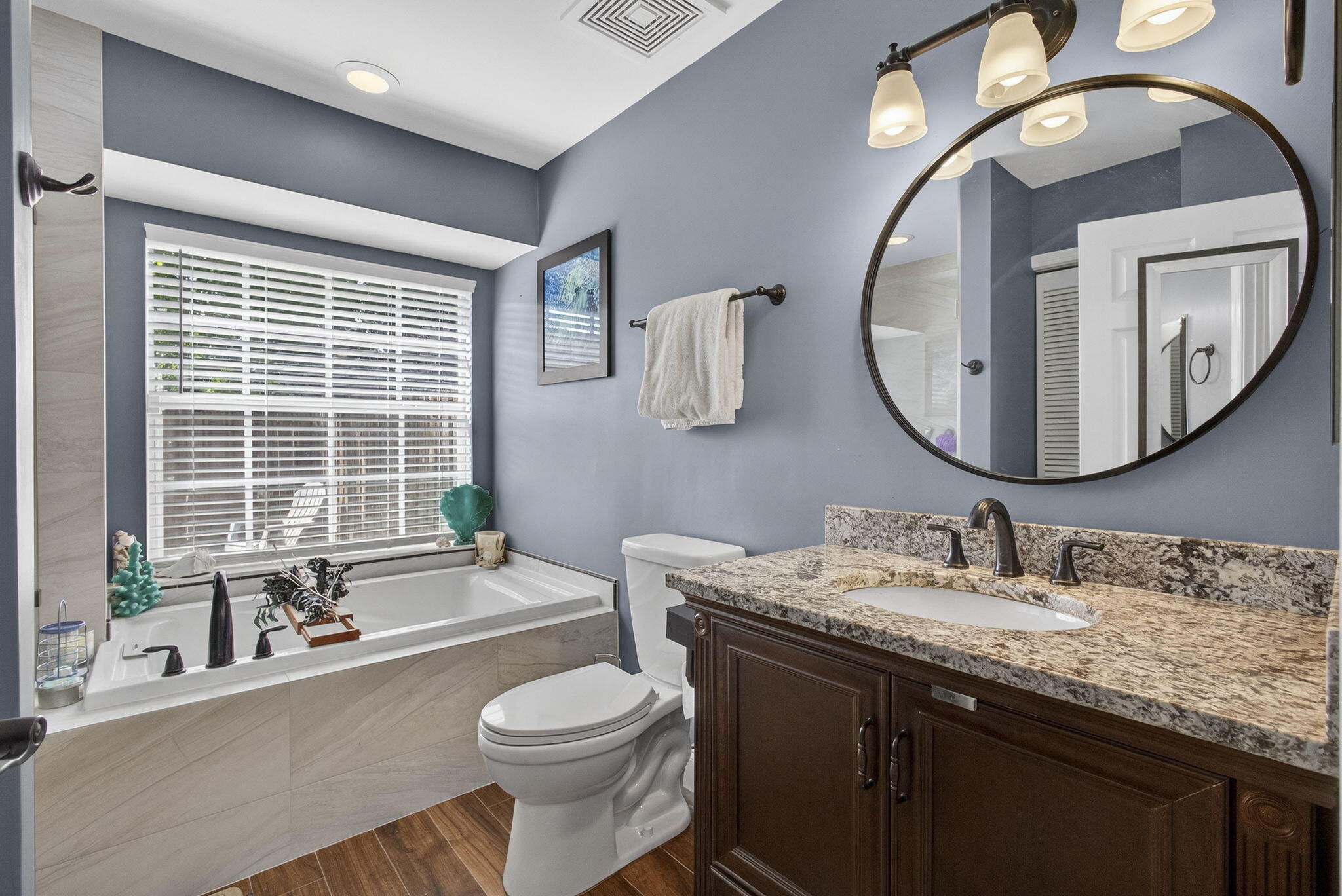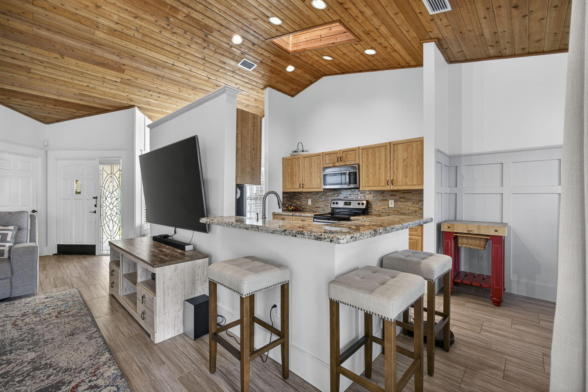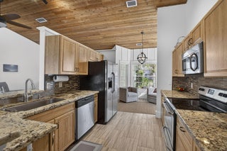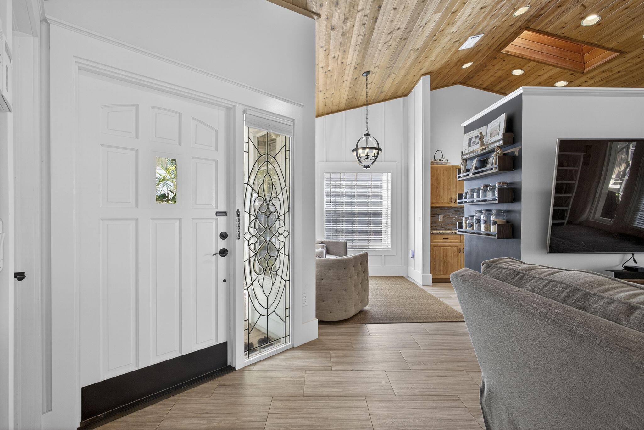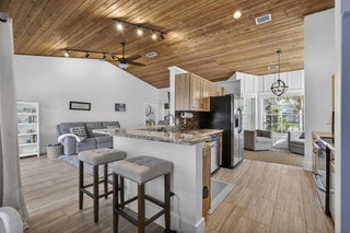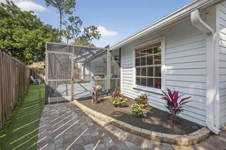 EQUESTRIAN LIFESTYLE IN WELLINGTON! This stunning 3 bedroom/2 bath/2-car garage courtyard home offers the perfect blend of charm, comfort, and convenience in a prime Wellington location. Light-filled interiors feature wood plank cathedral ceilings in the kitchen, dining, and living areas, and three skylights that enhance the bright, airy feel. The kitchen boasts granite countertops, stainless steel appliances, and a thoughtful pantry addition in the laundry room. The spacious primary suite includes a walk-in closet and ensuite bathroom featuring a jacuzzi spa tub. Enjoy the Florida lifestyle relaxing in the courtyard area or on your screened-in patio, complete with fenced yard and artificial turf. The home also features durable Hardie board exterior siding, offering long-lasting quality.Updates include NEW roof (2024), NEW AC (2025), hot water heater (2020), updated electric panel, and new smoke/carbon monoxide detectors for peace of mind. The low HOA covers common areas and access to a community pool. This location is unbeatable; minutes from the International Polo Club, Palm Beach International Airport, Wellington Mall, restaurants, parks, public pools, and just 20 minutes to Florida's east coast beaches. Pet-friendly and ready for your equestrian dreams!