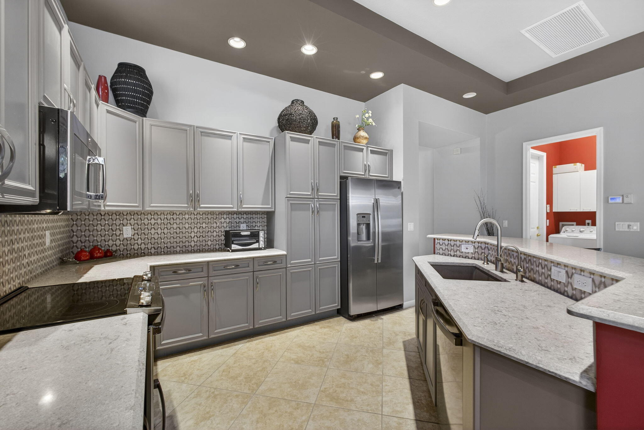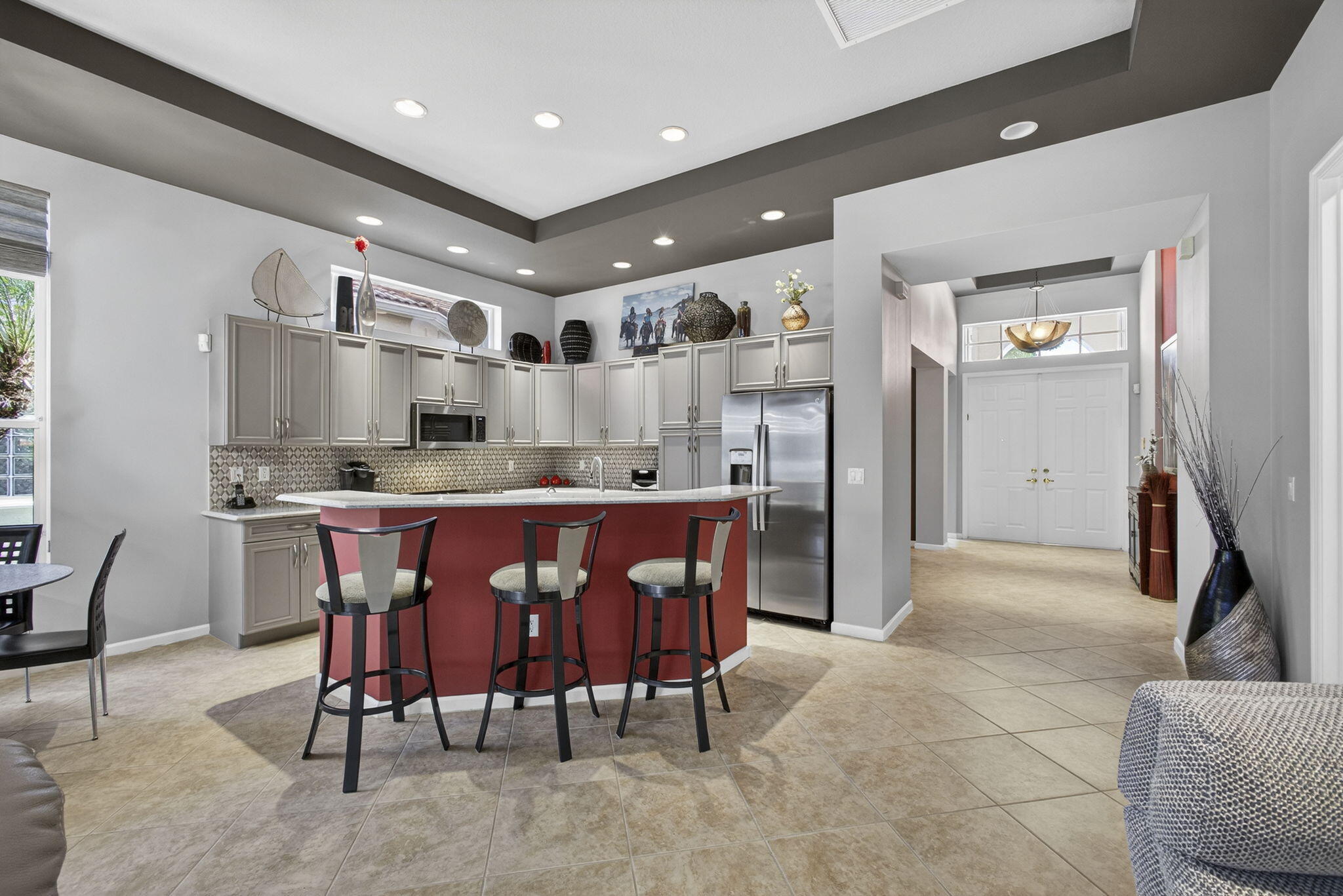 Built-in Shelves, Entry Lvl Lvng Area, Foyer, Cook Island, Laundry Tub, Pantry, Roman Tub, Split Bedroom, Volume Ceiling, Walk-in Closet