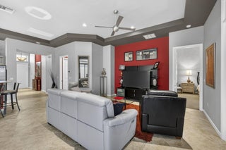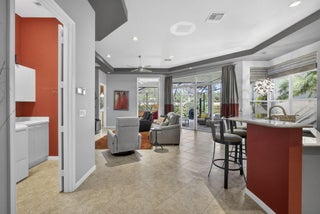 New to Market for the First Time, Decorator inspired and beautifully maintained, this sought after model offers 2 bedrooms, 2 baths, a den, great room, dining room, 2 car garage and an expanded screened and covered patio overlooking a serene park like setting. Presented for the very first time, this lovely home in Wellington's only single family 55 plus community features a newly remodeled kitchen with wood cabinetry, granite countertops and stainless steel appliances. Additional highlights include accordion shutters throughout, a newer 4 ton AC installed in 2023, a water heater replaced in 2021 and a stunning screened patio expansion added in 2017 that enhances outdoor living and entertaining. This home is truly one of a kind with its beautiful updated kitchen and inviting covered patiospaces. The community offers resort style amenities including two pools and spa, poolside cabanas, fitness center, steam room, card rooms, library, grand ballroom and an outstanding sports complex for pickleball and tennis. The HOA provides extensive services such as landscape maintenance, lake water irrigation for your lot, power washing of driveways and walkways, Xfinity cable and internet with speeds up to 500 Mbps, a 24 hour manned gate and an annual $500 café dining allowance. The location is exceptional. Only 15 minutes to PBI, 9 miles to the beaches and about 20 minutes to the Polo Grounds and Winter Equestrian Festival. The community of Buena Vida is ideally situated to enjoy South Florida's lifestyle from dining and boutique shopping to cultural attractions. Experience the good life at Buena Vida in Palm Beach County.