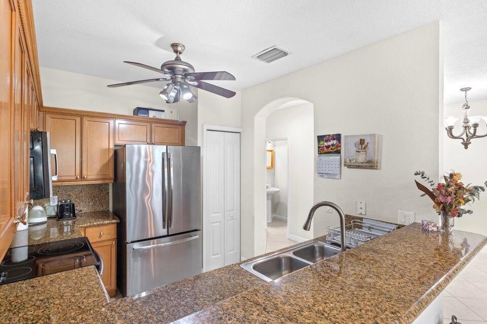 Spacious upgraded townhome available for immediate occupancy! Beautiful kitchen with newer ss appliances, granite countertops, wood cabinets. Separate formal dining, living and family rooms, voulted ceilings, extra storage area underneath the stairs. Wide driveway for 2 cars plus 1 car garage with auto garage door & coded entry lock. Master bedroom offers plenty of natural light overlooking a peaceful garden, oversized walk in closet and a spacious fully remodeled bathroom. Separate laundry room upstairs. Screened in & tiled porch as an extra bonus! ''A'' rated school zone, walking distance to Publix, easy access to Turnpike, 10 min to equestrian fields, all kinds of shopping, restaurants, entertainment, 2 miles to Wellington Hospital & Wellington Mall.