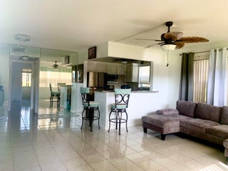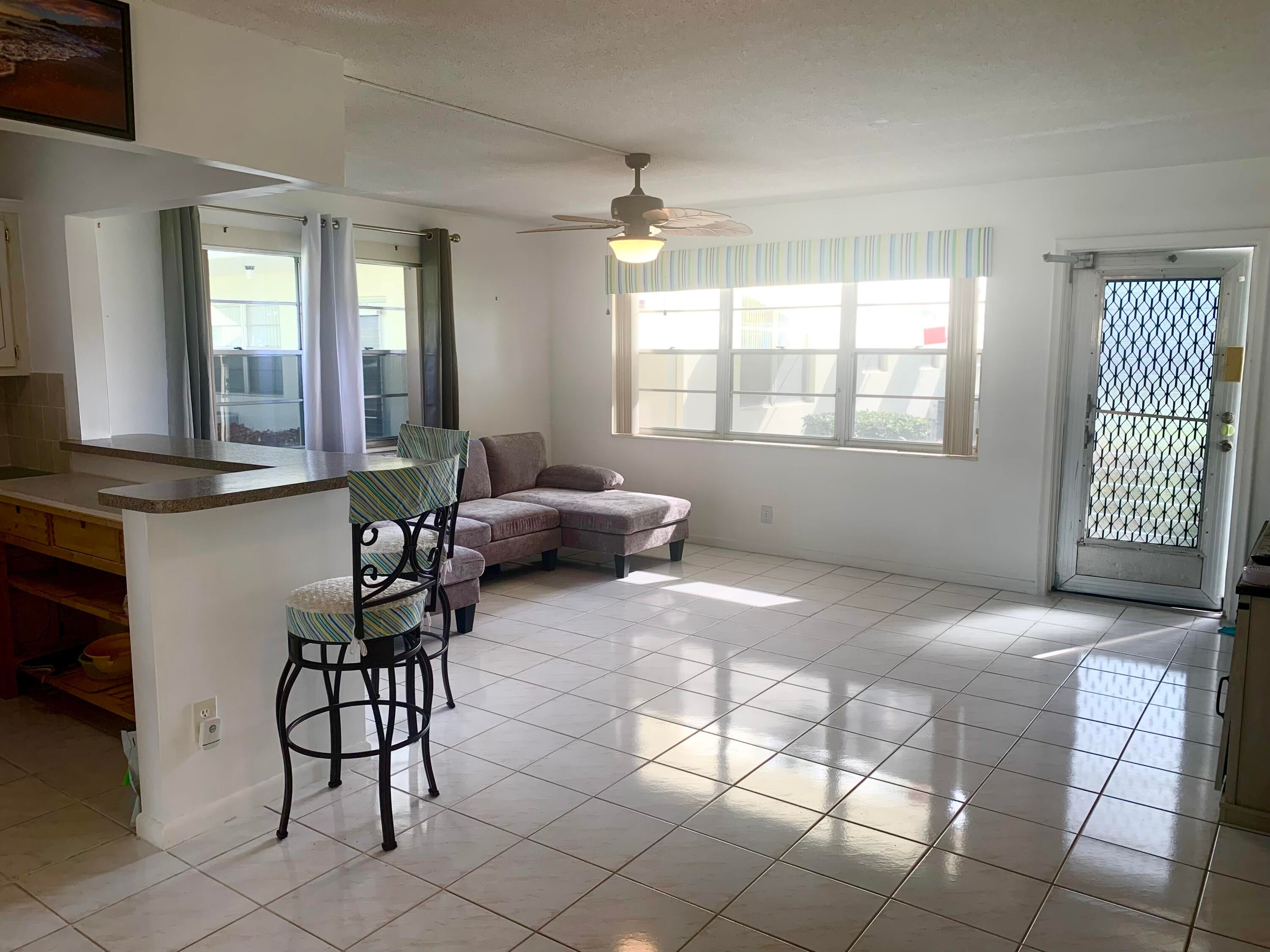 55 PLUS, RARE - 2 FULL BATHS, GROUND FL, CORNER UNIT, OPEN KITCHEN PENINSULA WITH EXTENDED COUNTERTOP FOR STOOLS CREATING CASUAL DINING FOR ALLOWING COOKING, SOCIALIZING & LIVING AREAS. TILED, CENTRAL AC, SURROUNDING BY BIG BEAUTIFUL SHADY TREES. BONUS PREMIUM UPFRONT PARKING SPOT. STEPS TO A POPULAR POOL. COMMUNITY HAS A PLETHORA OF AMENITIES. PROXIMITY OF PBI, DOWNTOWN, BEACHES, SHOPPING, TURNPIKE & 95. PARTIALLY FURNISHED. SLICE OF PARADISE