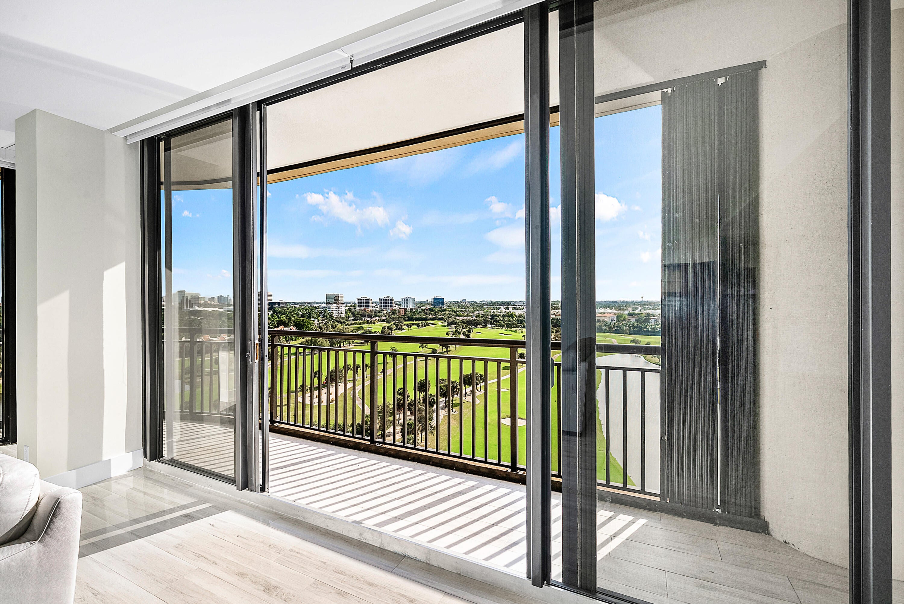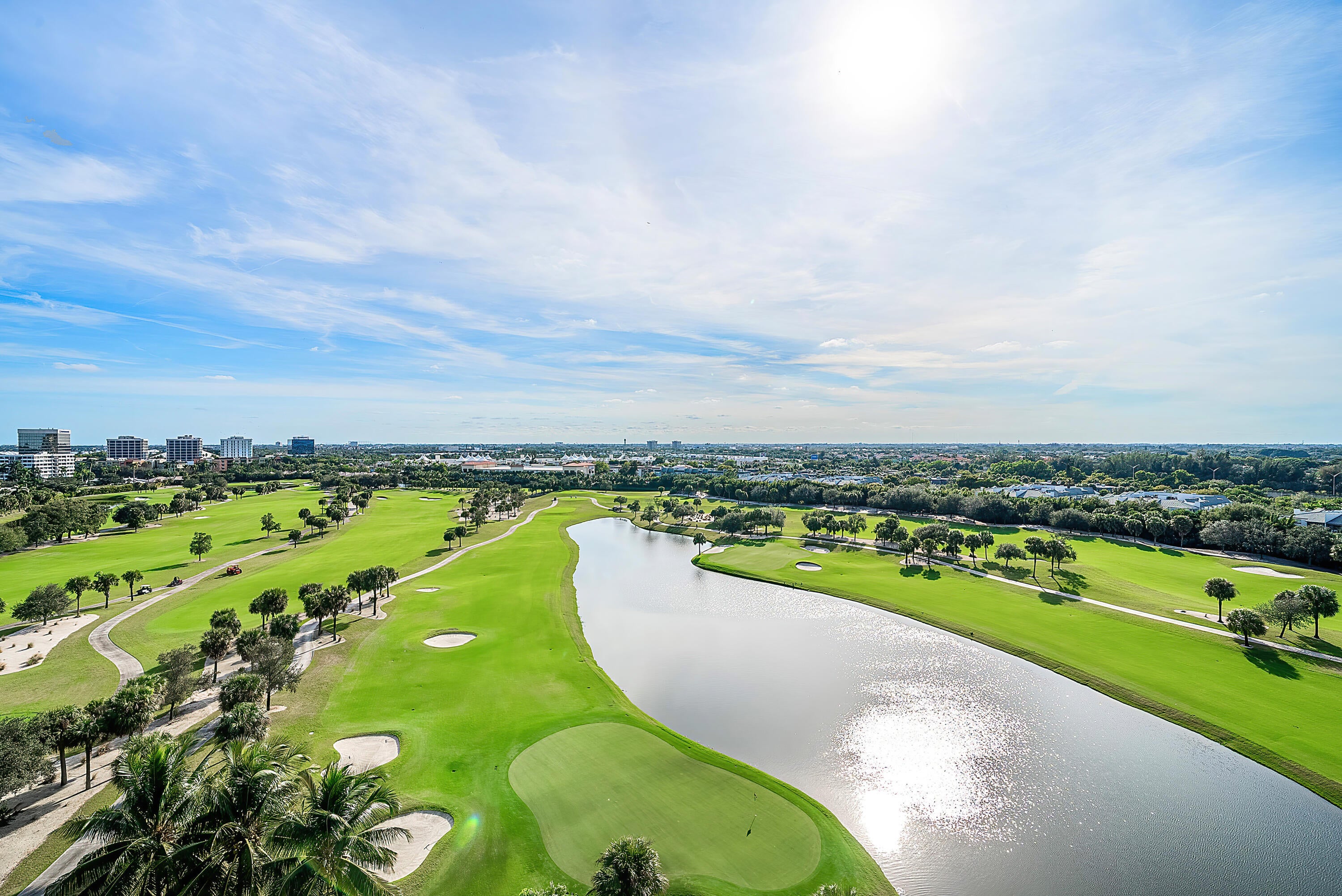 Bright and spacious residence in the gated Lands of the President community with wide golf-course, lake, and city views overlooking the newly reimagined Dutchman's Pipe Golf Club and the Belgrove, a Marriott Autograph Collection hotel. This well-laid-out unit features an open living area with floor-to-ceiling full impact glass sliders leading to a private balcony, along with a split-bedroom floor plan offering comfort and flexibility. The primary suite includes ample closet space and direct balcony access. Residents enjoy a renovated lobby, 24-hour manned security, community pool, and an unbeatable location just minutes to downtown West Palm Beach, The Square, Palm Beach Island, and PBI Airport.