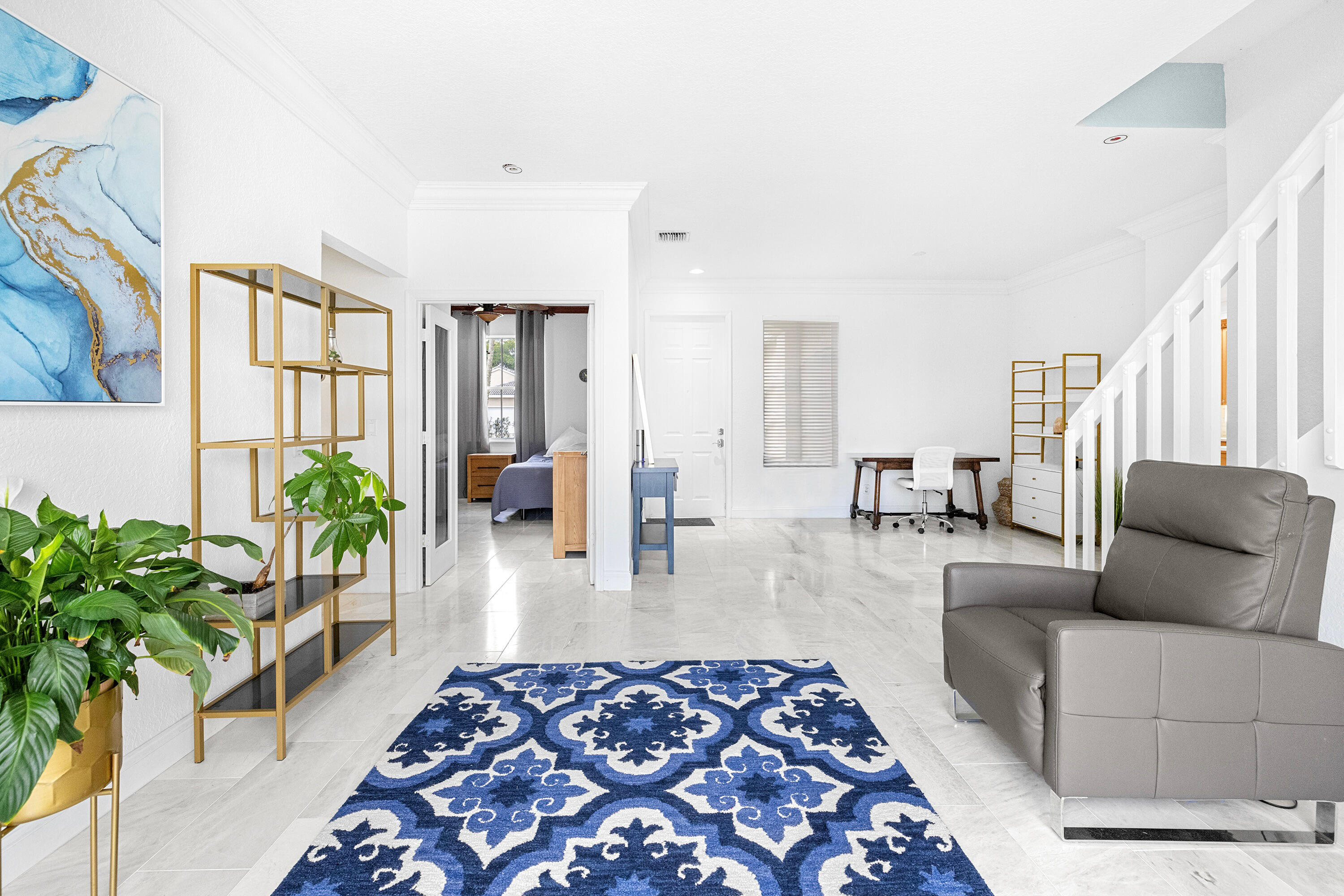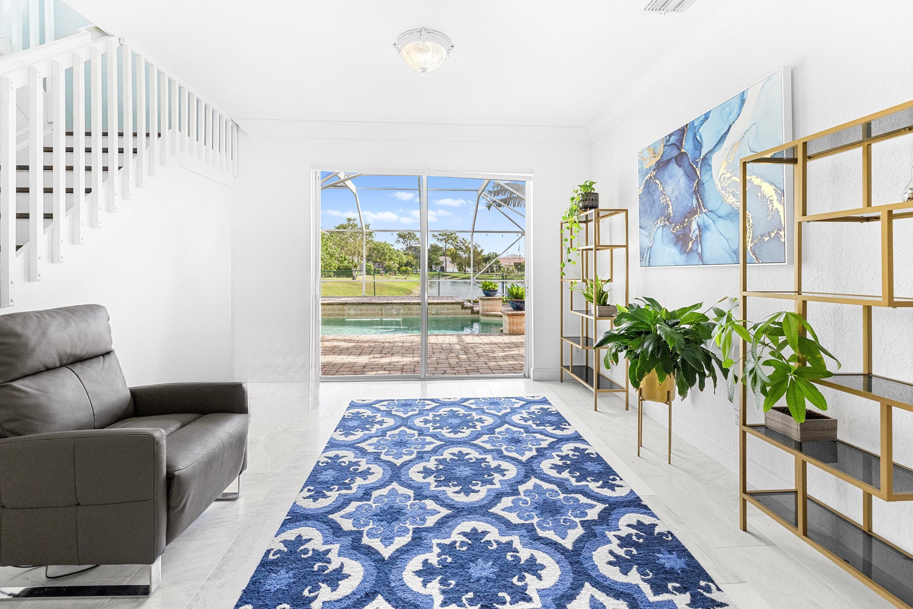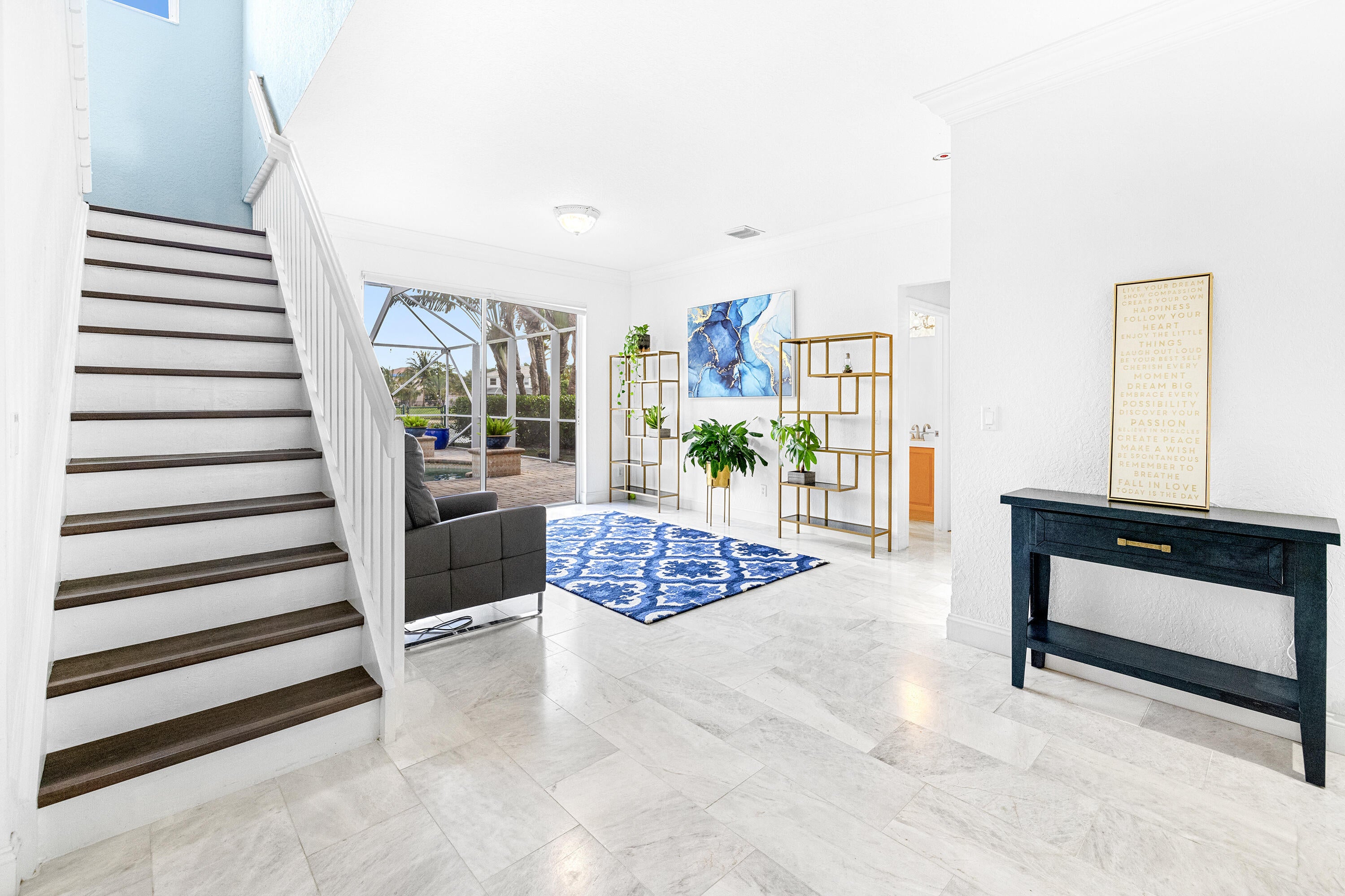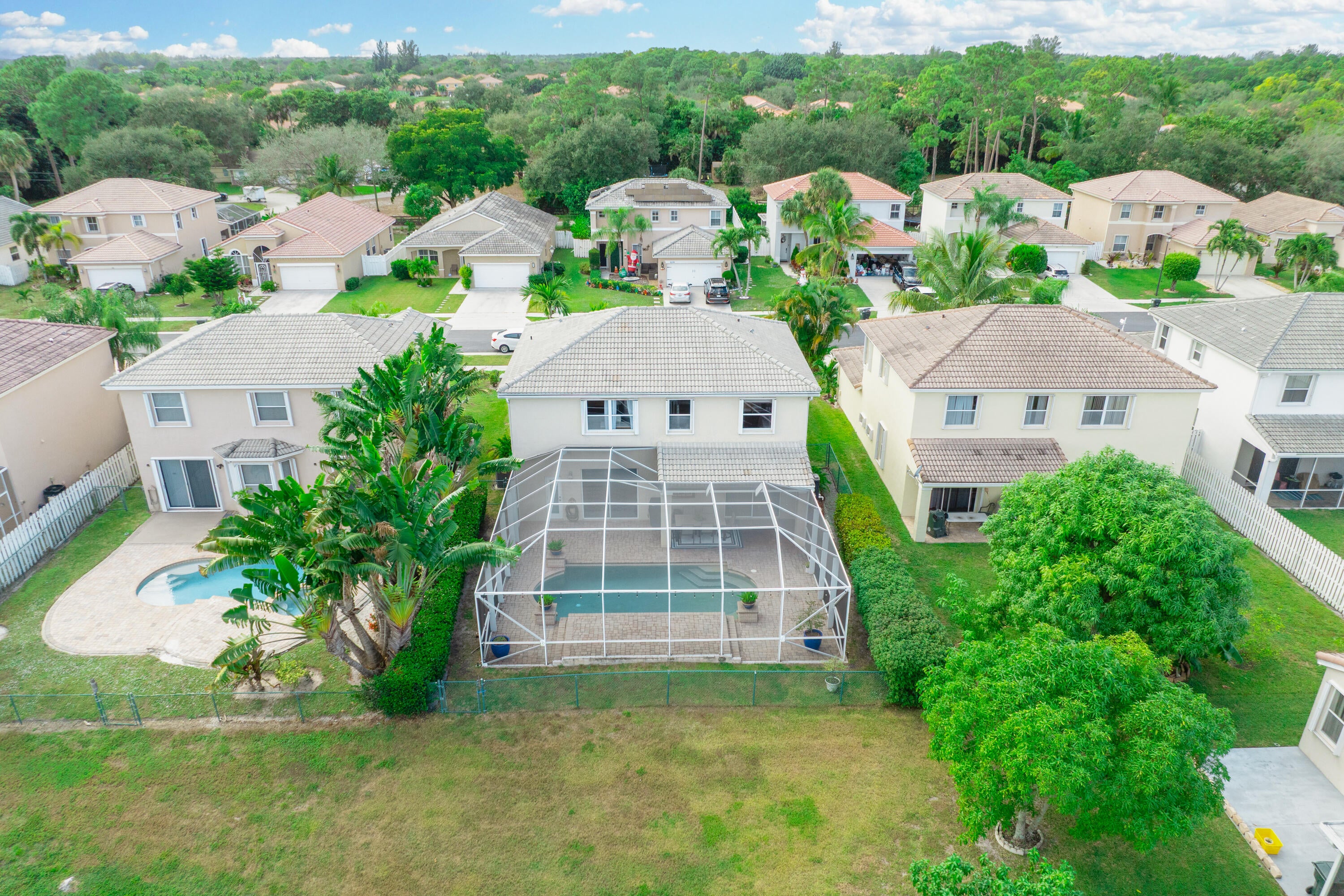 This stunning, updated 4 bedroom, 3 bathroom, POOL home sits on a generous LAKEFRONT lot, and is filled with phenomenal CUSTOM upgrades! It is a perfect home to host and entertain your family and friends. There is luxury imported marble on the first floor and hand-scraped wood flooring on the upper level. The kitchen is equipped with quartz countertops, newer stainless steel appliances (2024-2025), and plenty of light-wood cabinets crowned with elegant moldings. The luxurious, spacious and bright primary suite offers an oversized walk-in closet with convenient built-ins, and a renovated en-suite bathroom is complete with dual sinks, a beautifully crafted vanity, a soaking stand-alone tub and a separate shower. One of the bedrooms can serve as an office / library, and it features amazingcustom wood built-ins. A laundry room and two-car garage add everyday convenience. Relax by a custom-designed pool with waterfall, enclosed patio, and paver decking in the fully fenced yard for added peace and privacy. Watch mesmerizing FL sunrises from your own backyard. Located in the sought-after community of Dillman Farms, this gated neighborhood offers low HOA fees, great schools, and resort-style amenities. You'll also be just minutes from premier shopping, dining, Okeeheelee park, walking, biking, kayaking, and more! The home is only about 20 minutes away from the beach. This home is a beautiful luxury retreat to enjoy every single day. All measurements are approximate. Take a look at the 3D virtual walkthrough.