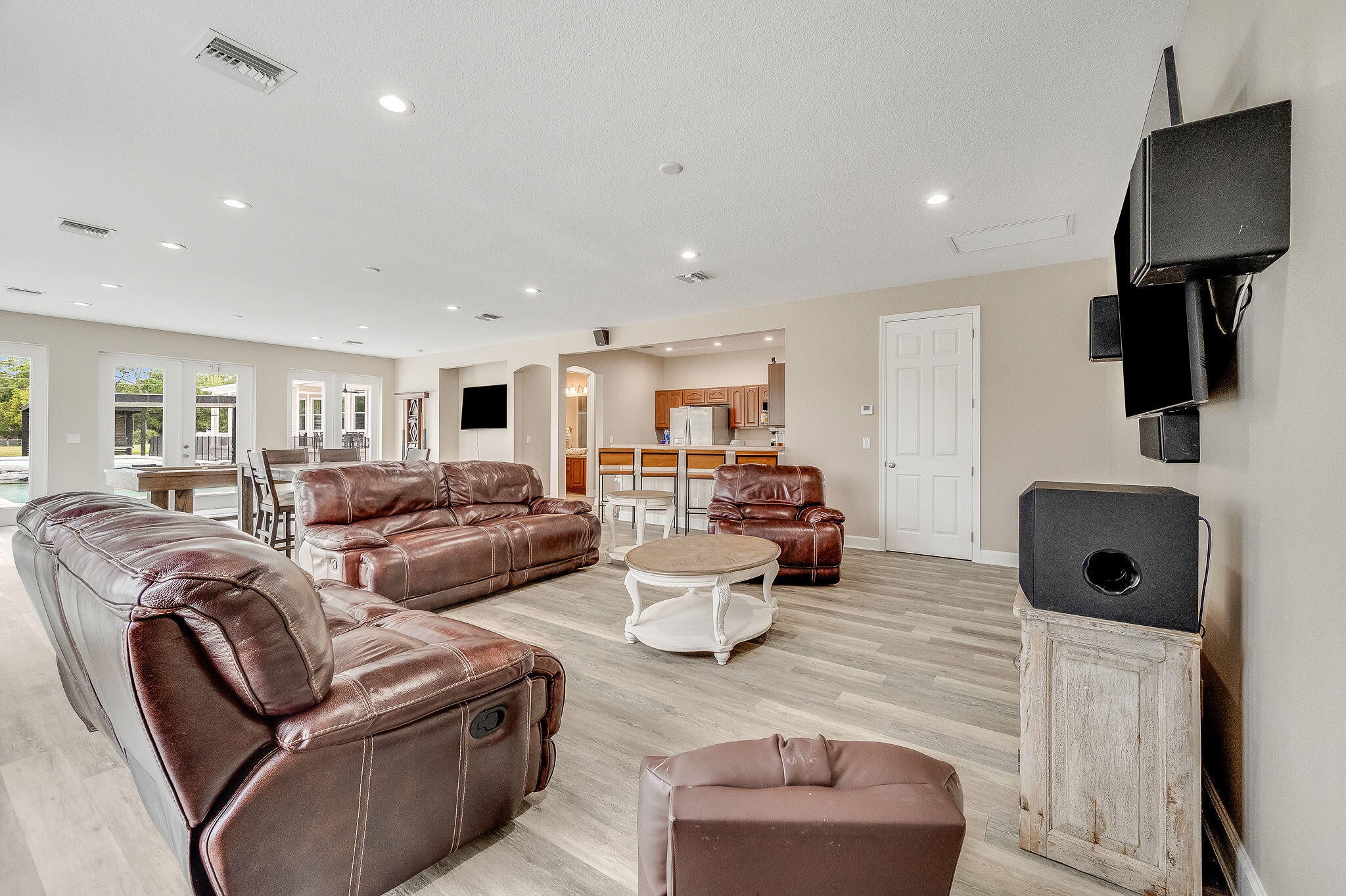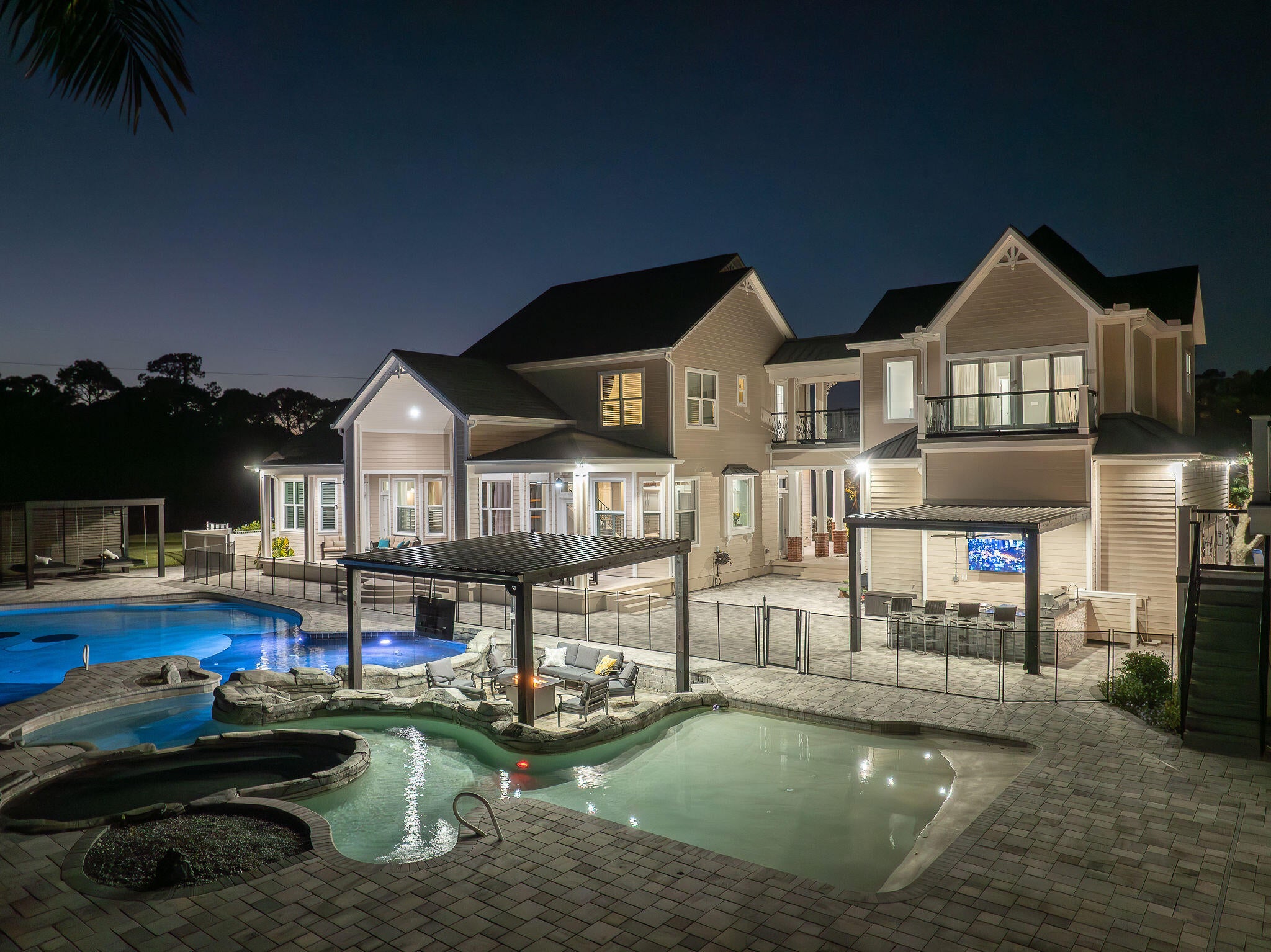 Welcome to one of the most iconic estates in the region the famed ''Mickey Mouse House'' a fully renovated 18-acre luxury retreat offering over 7,500 sq ft of resort-style living. Perched above a true destination-level pool and a serene 5-acre private lake, this property delivers an unmatched lifestyle of beauty, privacy, and pure fun. From the moment you enter, the home feels like a five-star getaway. The main house features 4 spacious bedrooms, a dedicated office, an elegant library, and a professional-grade movie theater. The heart of the home is the expansive, light-filled kitchen with open sightlines to the living areas, soaring ceilings, and custom live-edge wood accents that create a warm, organic sophistication. A covered bridge leads to a full in-law suite, kitchen, bath.