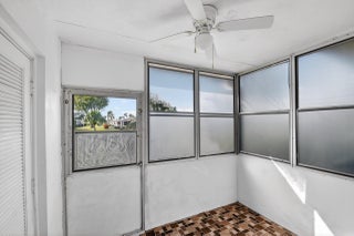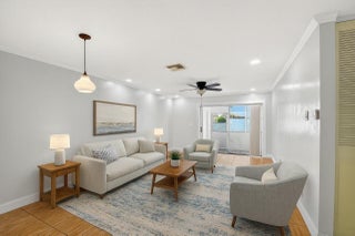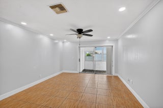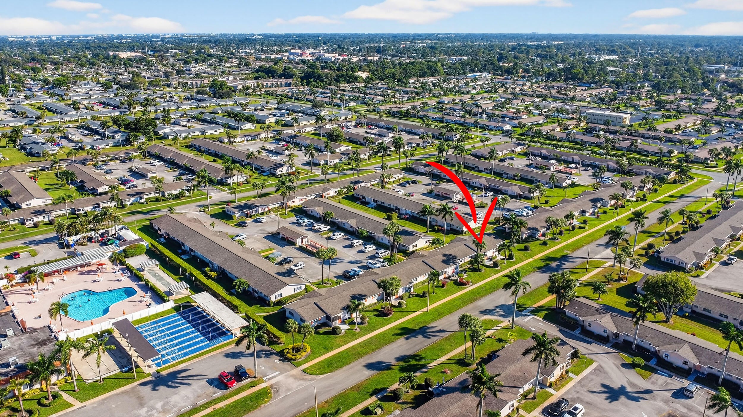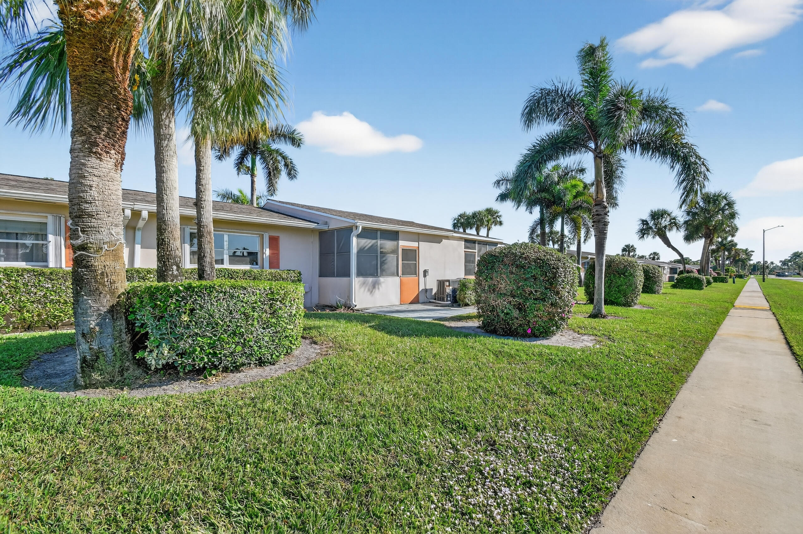 Charming 2 bed, 1 bath villa located in the friendly Cresthaven neighborhood. This single-story residence offers a smart floor plan with easy, low-maintenance living and plenty of opportunity to make it your own.Inside, you'll find a bright living area with neutral paint, tile flooring throughout, and an open layout that flows into the dining and kitchen spaces. The galley kitchen features generous cabinetry. A bonus enclosed porch provides a sunny nook to enjoy your morning coffee. Located just steps from beautifully maintained grounds lined with palm trees and manicured hedges, this home places you near all the amenities this active 55+ community has to offer -- including a clubhouse, pool, fitness spaces, and social activities. This is a wonderful opportunity to enjoy affordableSouth Florida living with the freedom to update and personalize at your own pace. Centrally situated near shopping, dining, medical facilities, and a short drive to beaches.