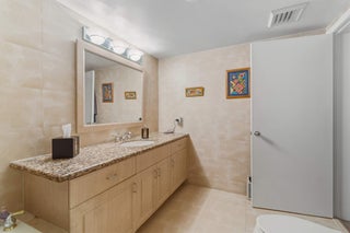 Lanais are for dog lovers, or maybe just for people who like to come and go from the beach without elevators! At Beach Point, the sliding glass doors of 105S open directly on to a private lawn that turns the corner to a wide sandy beach. Beach Point is one of the friendliest buildings in Palm Beach- allowing two dogs any size, and there's no better spot in the building than this one. South facing light, a terrace with ocean views and a come-and-go lanai level lifestyle. Walk out the doors of your own unit and you are already on your way to the beach. The kitchen is a joy, open to the living room with an eat-in counter and the living room, dining area and both bedrooms all open on to the lawn and terrace- with views east to the blue Atlantic.