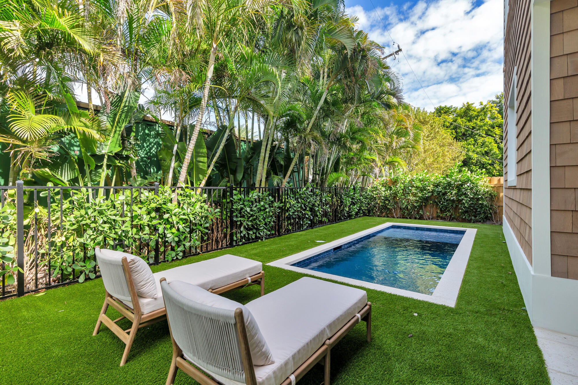 Situated yards away from Flagler Drive and the Intracoastal Waterway rests this stunning new construction home. Featuring 5 bedrooms, 5 full bathrooms and 2 powder rooms, this 5,660 total square foot home was built and designed with extreme attention to detail. Walking in the home, your eyes immediately affix to the incredible millwork. Every inch of this home was designed for the most discerning buyer. The kitchen is a dream come true boasting marble countertops, custom made cabinets, Thermador appliances, a Lacanche Range and a butler's pantry with ample storage space. With a built-in back-lit bar and custom built in shelving, the open concept family/ living/ dining room is both cozy and luxurious. Highlighting a first floor primary bedroom with cathedral ceilings, a massivewalk-in shower/ tub wet room, an oversized dual walk-in closets, a private laundry room and a 7' x 26' private office/ loft. The primary bedroom and all its finishes were very obviously curated by a professional designer. The second floor offers a large loft area, laundry room and 4 bedrooms each with an en-suite bath. Step into your own private Florida oasis. This resort-style backyard is anchored by a sparkling pool framed by lush, mature landscaping for total privacy. A spacious covered loggia offers the perfect place to relax or entertain. The cabana provides an outdoor kitchen and a dedicated pool bath for convenience. Designed for year-round enjoyment, this outdoor retreat blends comfort, beauty, and coastal living at its finest. Close to Worth Avenue shopping, Five-Star restaurants, I-95, PBI Airport, Mar-a-Lago, fabulous white sand beaches and much more.