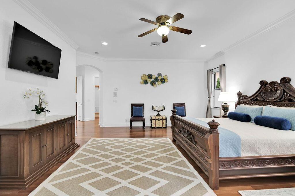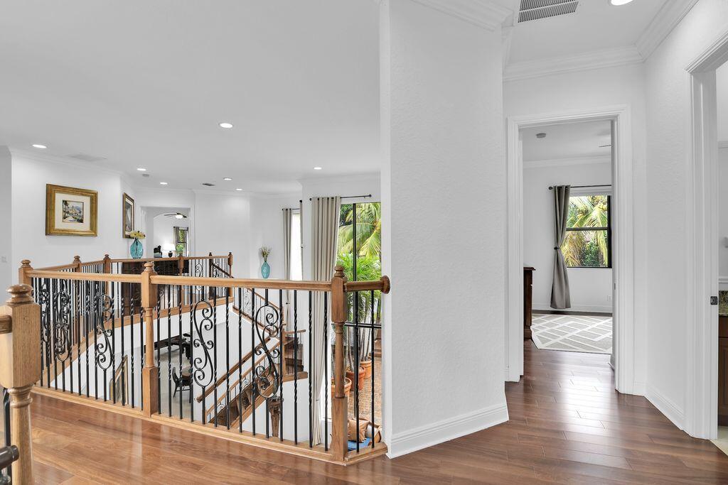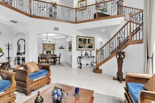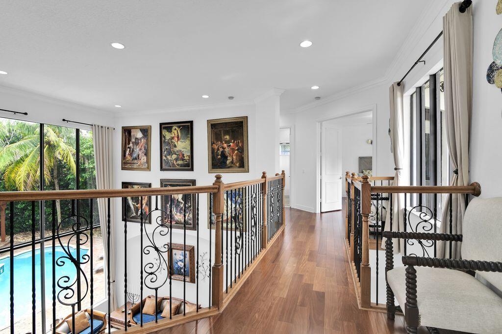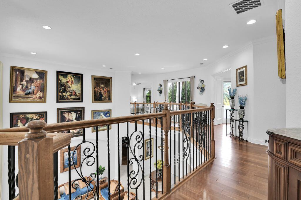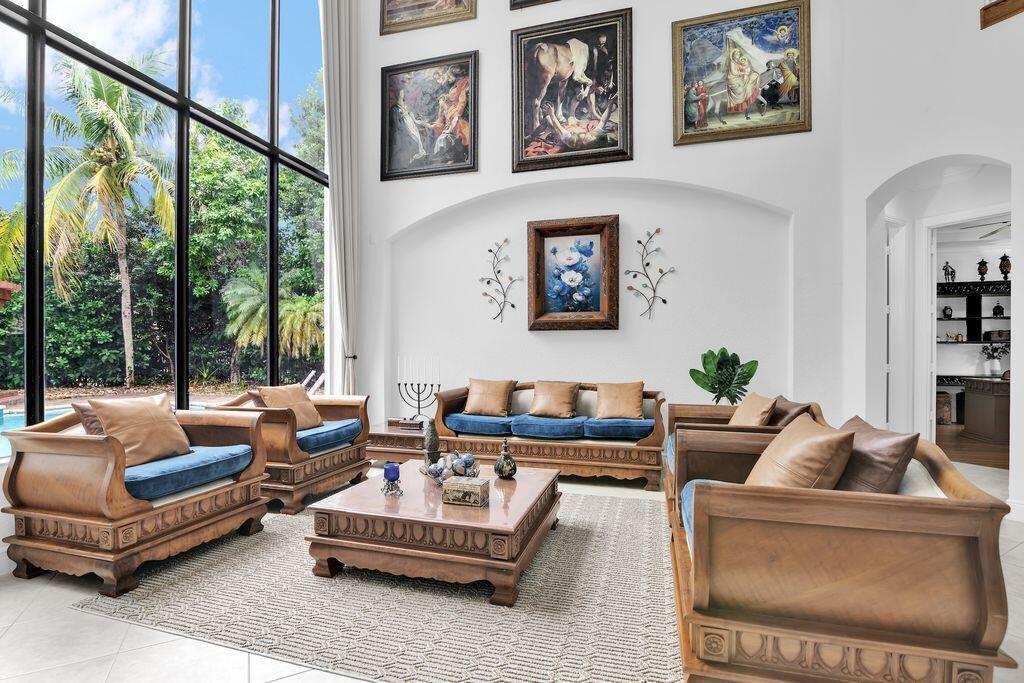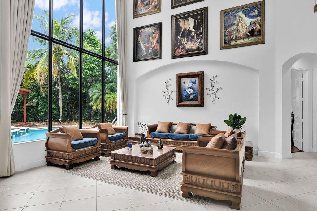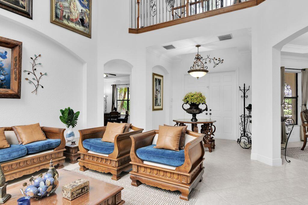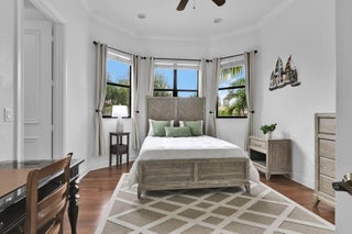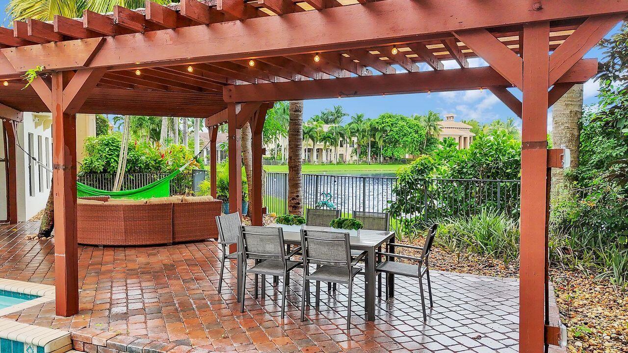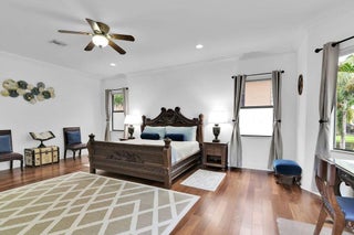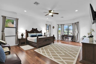 Set on a serene lakefront lot within Wellington's coveted Versailles community, this estate offers a lifestyle of comfort and sophistication. The backyard is the showpiece of the home, highlighted by a sparkling pool, relaxing spa, private gym area, and a hammock nook perfectly positioned to enjoy the water views. Indoors, the floorplan is designed for both work and entertaining, featuring a dedicated office, a media/meeting room, a generous lounge, and a stylish bar that connects to the gourmet kitchen. Upstairs, the primary suite provides a peaceful escape with its own terrace overlooking the palms and lake. With 6 additional bedrooms, warm wood elements, and custom-crafted storage throughout, the home provides abundant space and refined detail.Located minutes from Wellington's premier equestrian facilities. Offered for annual lease, with seasonal terms considered.