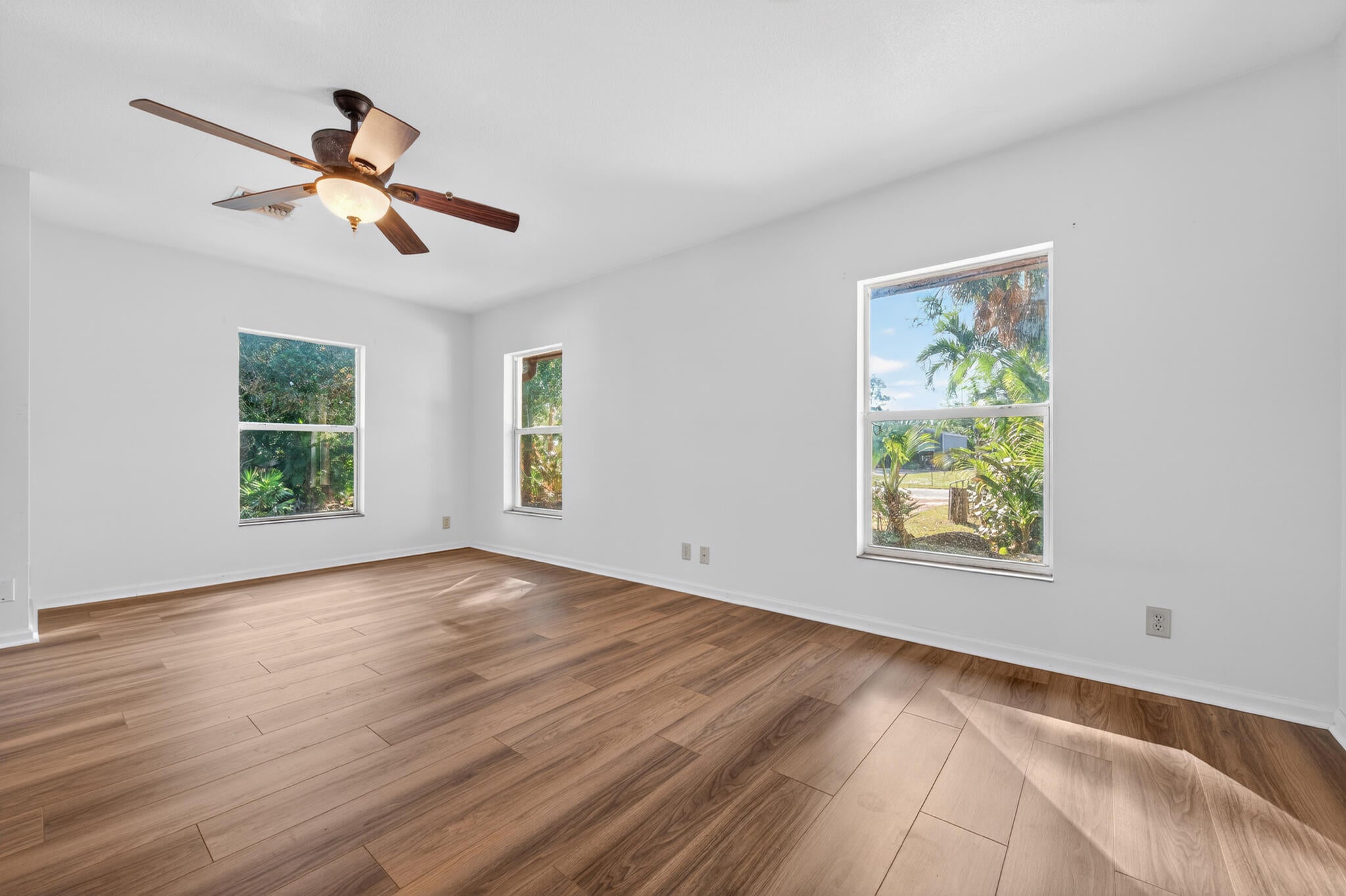 Discover comfortable and spacious living in this beautiful custom-built CBS home freshly painted and updated with new luxury vinyl floors, featuring 3 bedrooms, 2 bathrooms plus a dedicated office. The primary suite offers a relaxing jacuzzi soaking tub and separate walk-in shower, creating a pleasant retreat at the end of the day. Enjoy an open kitchen that flows into the great room, featuring stainless steel appliances, a center island perfect for cooking and gathering, and a large walk-in pantry that provides exceptional storage and convenience. Resting on 1.28 acres of high, dry, fully fenced and gated land. The property is zoned agricultural, perfect for bringing your toys, pets, horses, and for growing your own vegetables. The grounds feature mature mango, starfruit, and coconut palms for a true South Florida feel. A full RV hookup and a 24' x 29' detached workshop with 220 and 110 power provide excellent options for hobbies, projects, or extra storage. Inside, the split floor plan offers privacy and comfort, with large rooms and impressive closet space throughout. A central vacuum system, extra storage and an additional washer/dryer hookup off the patio, two water heaters, two central A/C & heating systems, one only 2 years old with blue-light purification, energy-efficient design, camera system included. Enjoy the outdoors year-round on the expansive screened patio overlooking the peaceful tropical foliage. No HOA. Located on paved roads in a highly desirable part of Loxahatchee, you'll be conveniently close to grocery stores, gyms, restaurants, and shopping. This well-maintained property offers space to build a pool, comfort, and versatility making it a wonderful place to call home.