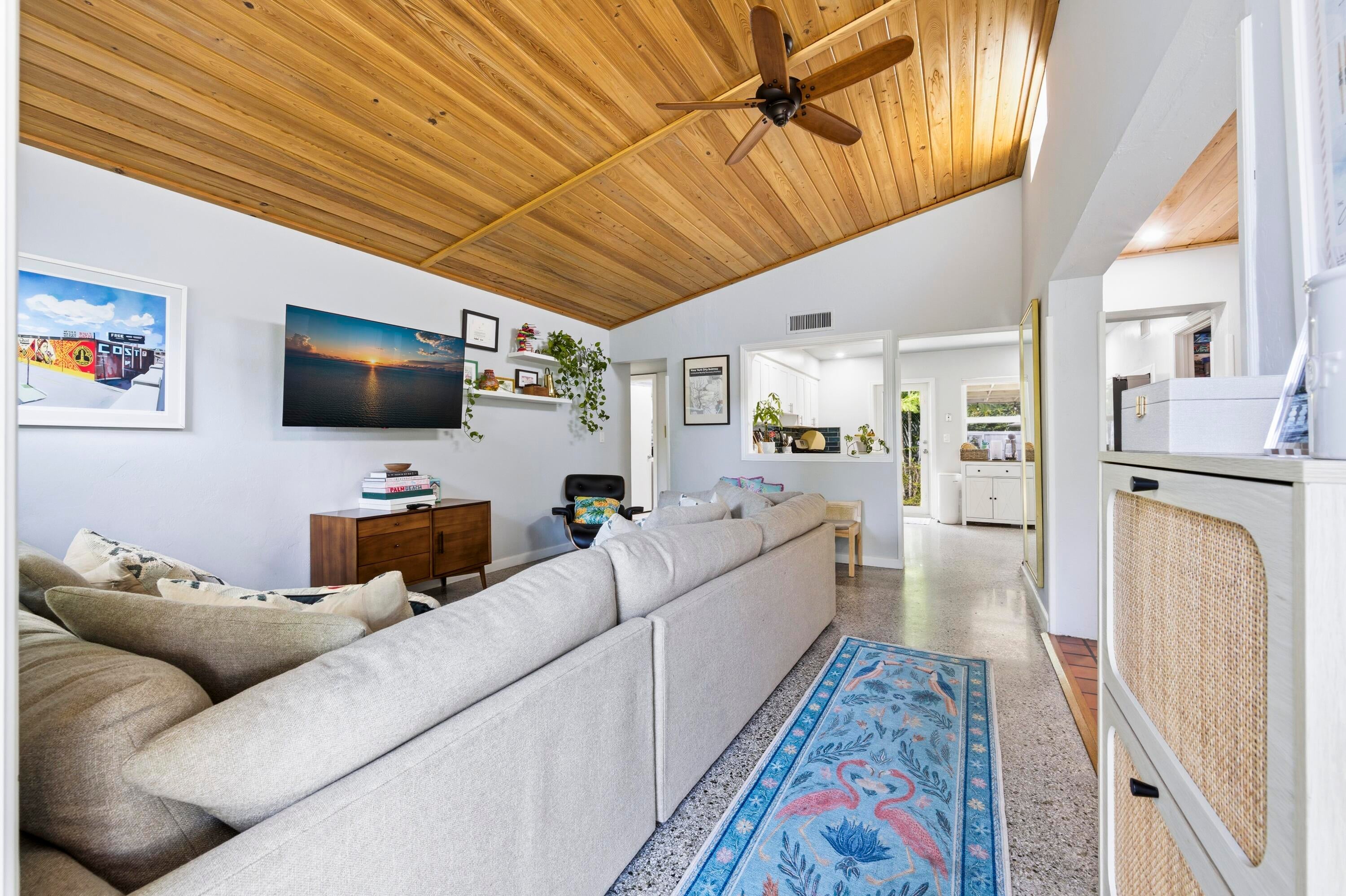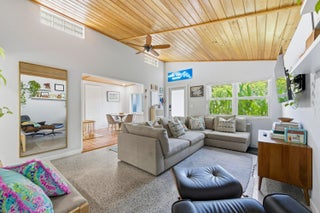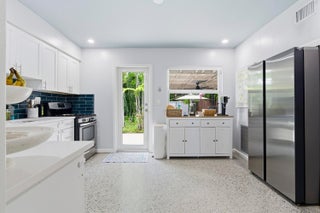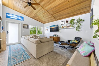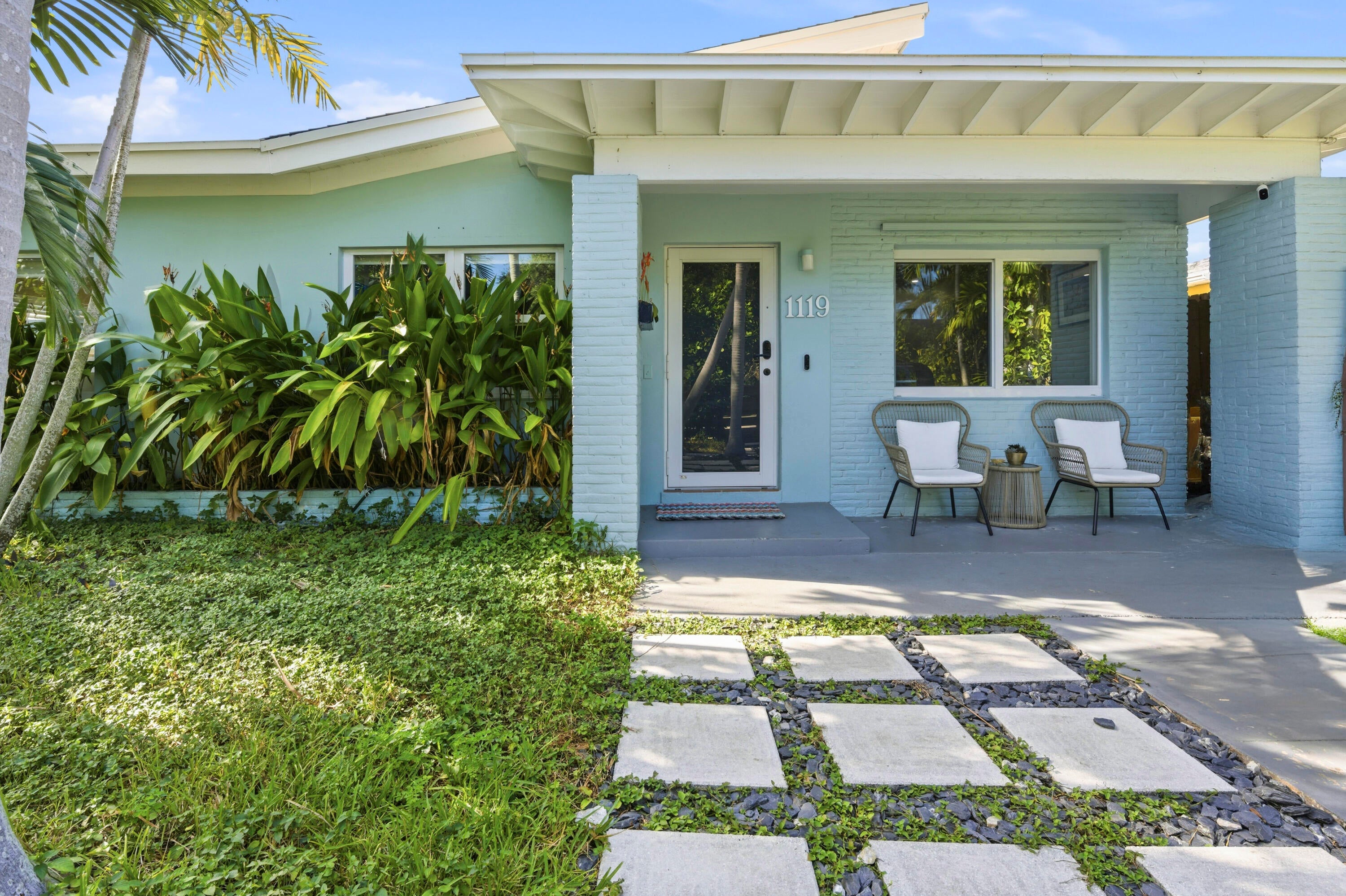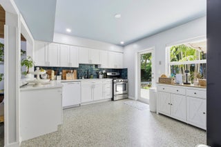 Charming completely renovated home surrounded by lush tropical landscaping in the heart of historic Lake Worth Beach. Stunning inside with vaulted ceilings, entry level living room, and spacious updated kitchen featuring white cabinetry, quartz countertops, and stainless steel appliances including a gas range. Stack bedrooms with beautifully redone bathroom. New impact windows and doors throughout. The outside tropical sanctuary is fenced for privacy and features covered and open patios, perfect for entertaining, along with a detached play house. Enjoy direct access to the back through fence doors accessible by an alley along the rear of the property. Convenient to downtown Lake Worth Beach, Lake Worth Beach Golf Club, and short drive to the beach and area attractions.