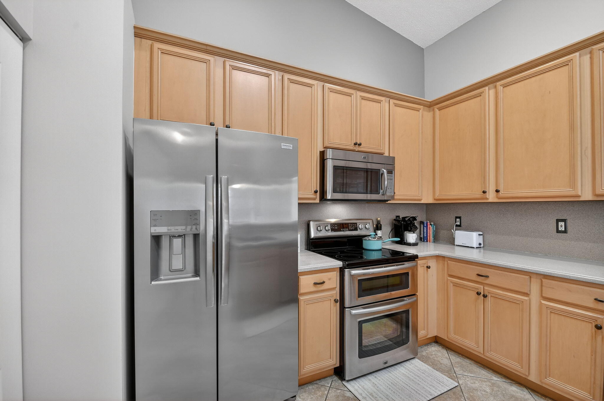 This very desirable end-unit villa is open,bright,& tastefully decorated in neutral tones.Tile flooring throughout.The 3rd bedroom can also serve as a den or office,& the 2nd bedroom features built-in closet organizer.The kitchen is highlighted by a skylight,stainless steel appliances,& a brand-new refrigerator.The spacious primary suite has a walk-in closet w/ a new ceiling fan & bath w/ walk-in shower.The expansive great room featuring both living/dining spaces includes a built-in bar,for entertaining.Step outside to your private,covered,& screened-in patio for year-round enjoyment.The community has a new clubhouse,a well-equipped fitness center, two pools,pickleball & tennis courts,& a variety of clubs & activities.Conveniently located near shopping,dining,Turnpike,& much more.