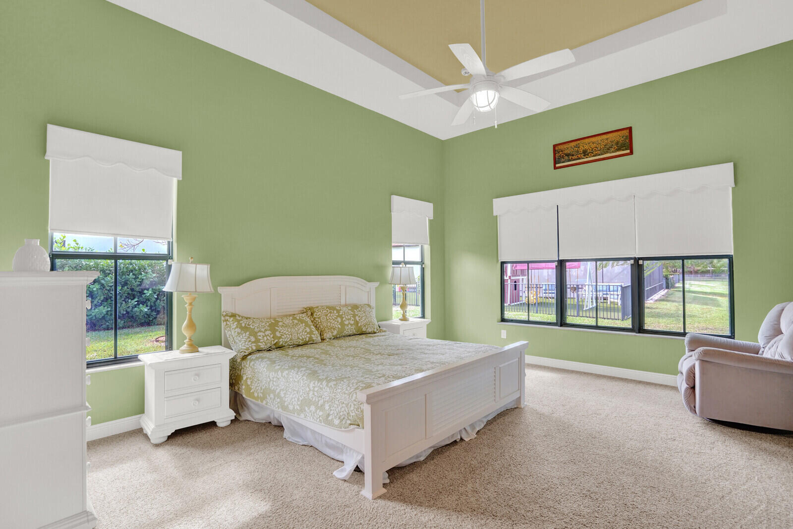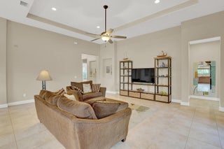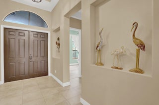 Welcome home! This elegant and spacious one-story Birch model in the sought after community of Osprey Oaks offers 4 bedrooms and 3.5 baths. Step through the double-door foyer entry and into a true open-concept floor plan featuring soaring ceilings, all impact windows and doors, tile flooring throughout the living areas, recessed lighting, neutral paint, upgraded fixtures, custom window treatments plus screen enclosed front and rear patios. A peaceful backyard lake view and gorgeous, mature poinciana tree completes the inviting ambiance. This meticulously maintained home, cared for by its original owner, features an expansive great room and formal dining area that flows seamlessly into the beautifully designed kitchen.The kitchen offers real wood cabinetry, granite countertops, stainless steel appliances, a generous snack bar and a charming breakfast nook. The spacious primary suite includes volume ceilings, dual walk in closets and an en-suite bathroom with a Roman tub, glass-enclosed shower, his and her sinks, wood cabinetry and quartz countertops. The additional bedrooms are generously sized with ample closet space and private en-suite baths. The fourth bedroom is currently used as a home office but can easily be converted to a bedroom. Situated on a .27 acre waterfront lot, the outdoor space includes a large covered and screen-enclosed patio. Additional highlights include a sizable laundry room with soaking sink, a lake fed sprinkler system managed by the community, a fully paid CDD assessment for lower taxes and the peace of mind that comes with a newer home. Osprey Oaks is a gated community offering a free-form pool and spa, state-of-the-art fitness center with children's playroom, pristine lakes, natural preserves, and paver sidewalks throughout as well as a clubhouse available for community events and private parties. Located in desirable western Lake Worth, the neighborhood provides convenient access to A-rated schools including Park Vista High, Christa McAuliffe Middle and Manatee Elementary as well as nearby shopping, dining, recreation and Florida's Turnpike.