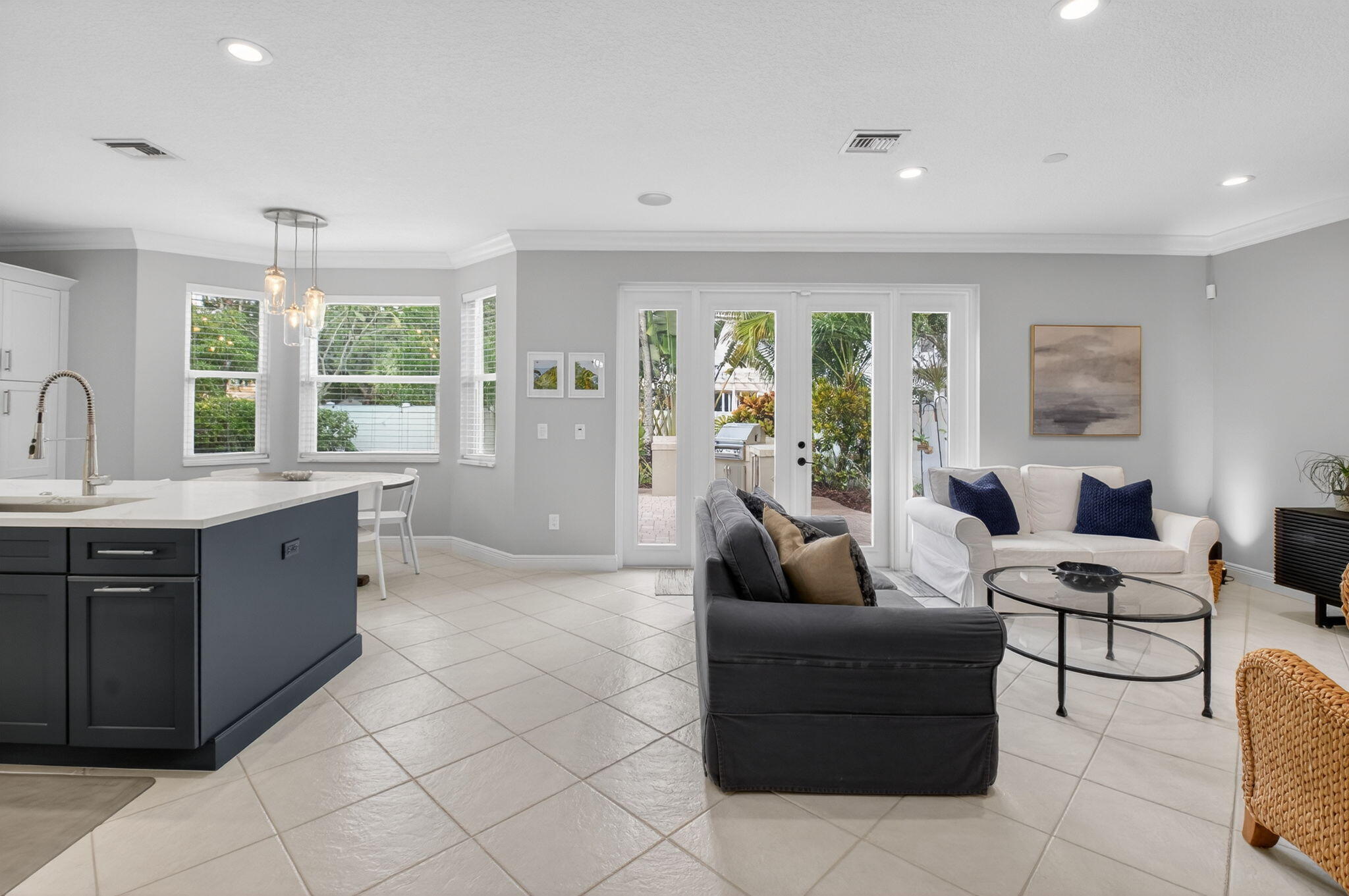 Pride of ownership scores a 10 in this exceptionally maintained, beautifully upgraded, stylish, single-owner home! 2022 ROOF & gutters, IMPACT glass/doors, a designer 2020 kitchen with quartz counters & marble backsplash. Renovated half bath & 2nd bath. Engineered wood floors on the stairs & 2nd floor. Additional upgrades include a hybrid smart water heater, UV & air-purifying A/C, generator hookup, and an EV charger hookup. The large, private, fenced-in corner lot is an outdoor sanctuary surrounded by tropical plants including a banana tree, pineapple plants, a gorgeous Royal Poinciana tree & more. Enjoy hours of fun & entertaining with your built-in grill/outdoor kitchen and swing! Plenty of room for a pool! Located in an A-rated school district. Family-friendly community!