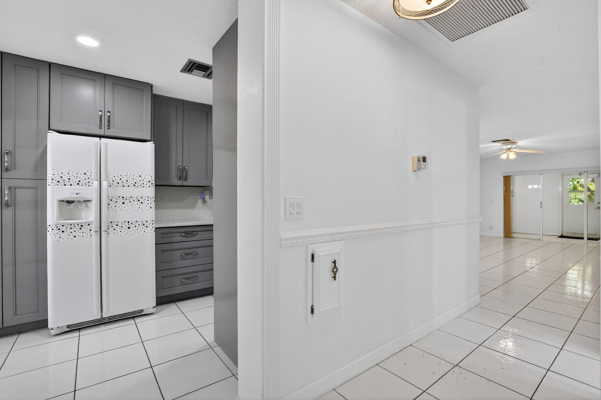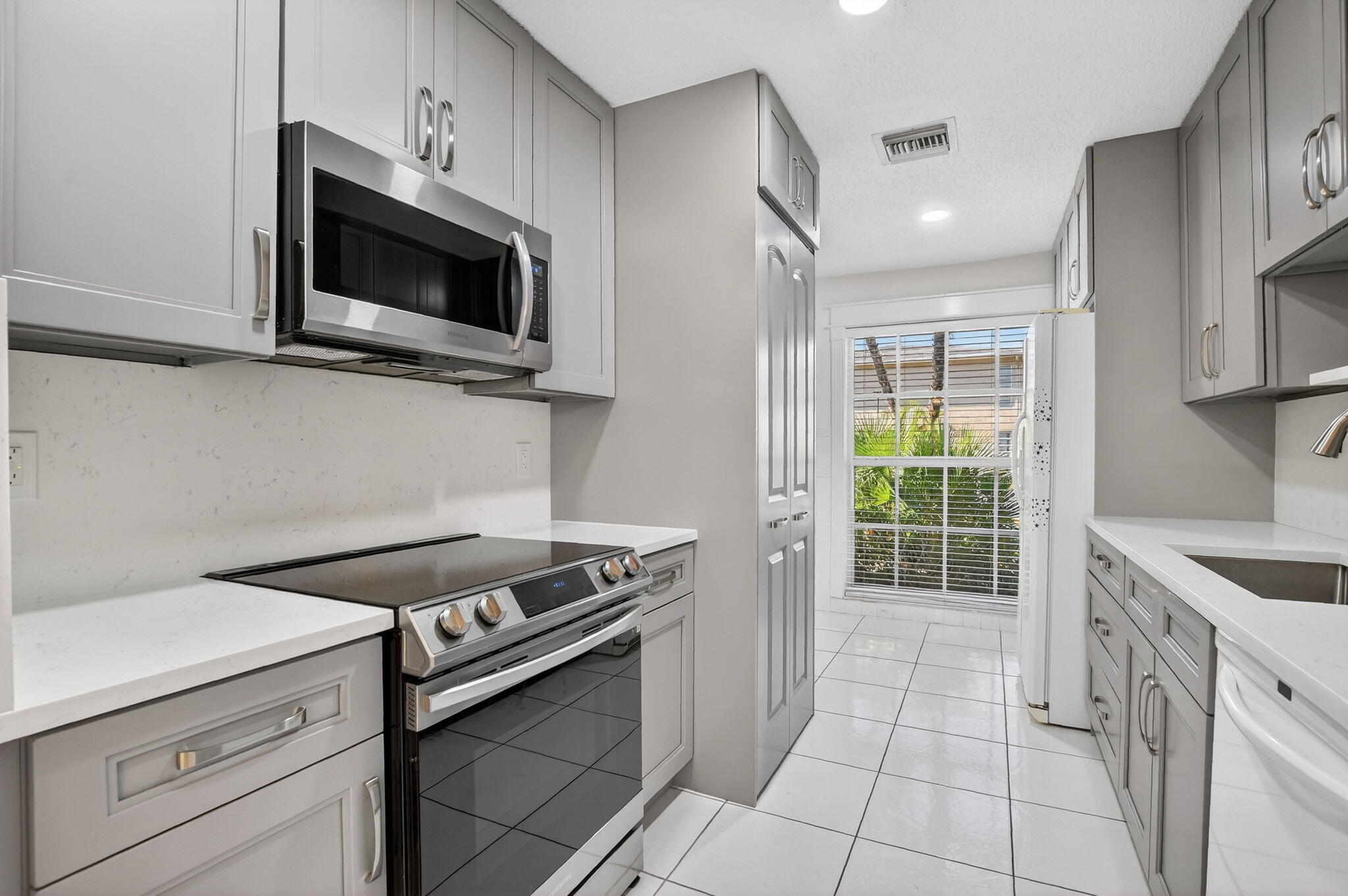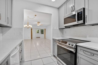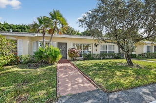 Beautifully renovated 2-bedroom, 2-bath villa in the highly sought-after Palm Greens community! This bright, open home features tile flooring throughout and a custom kitchen with modern cabinetry, roll-out pantry shelves, stainless steel appliances, quartz countertops, and deep chef's sink with a touchless faucet. The spacious master bedroom offers a serene retreat with a walk-in closet and an updated ensuite bath with dual sinks and granite countertops. Bedroom 2 has a large closet and attached bathroom. Sliding doors open to a window-lined Florida room with extra storage and access to a spacious patio surrounded by lush landscaping. Resort-style community with clubhouse, pool, gym, tennis, billiards, and more in a prime location close to shopping, restaurants and entertainment.