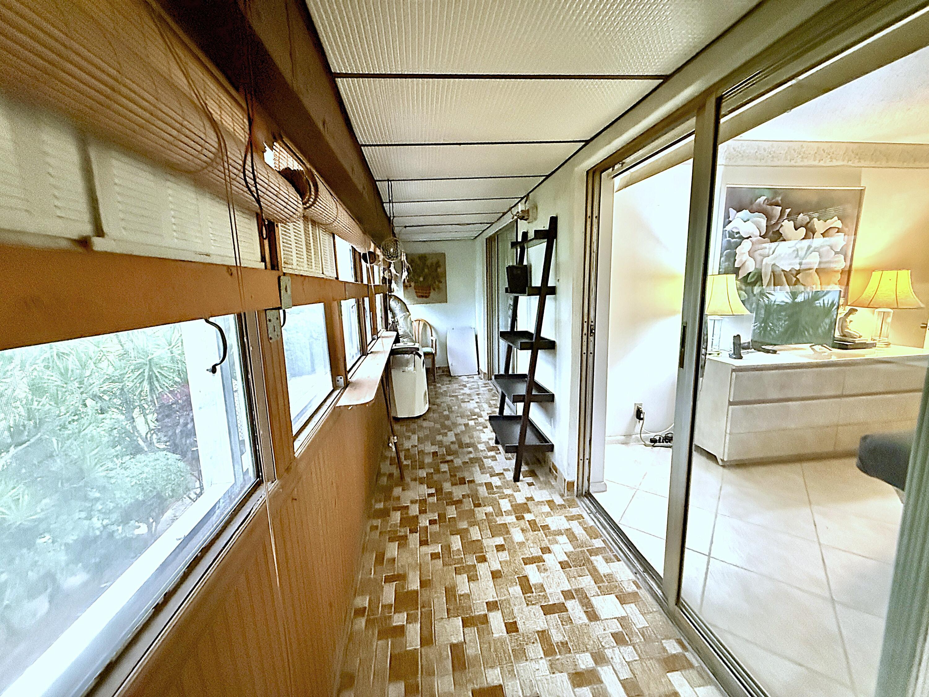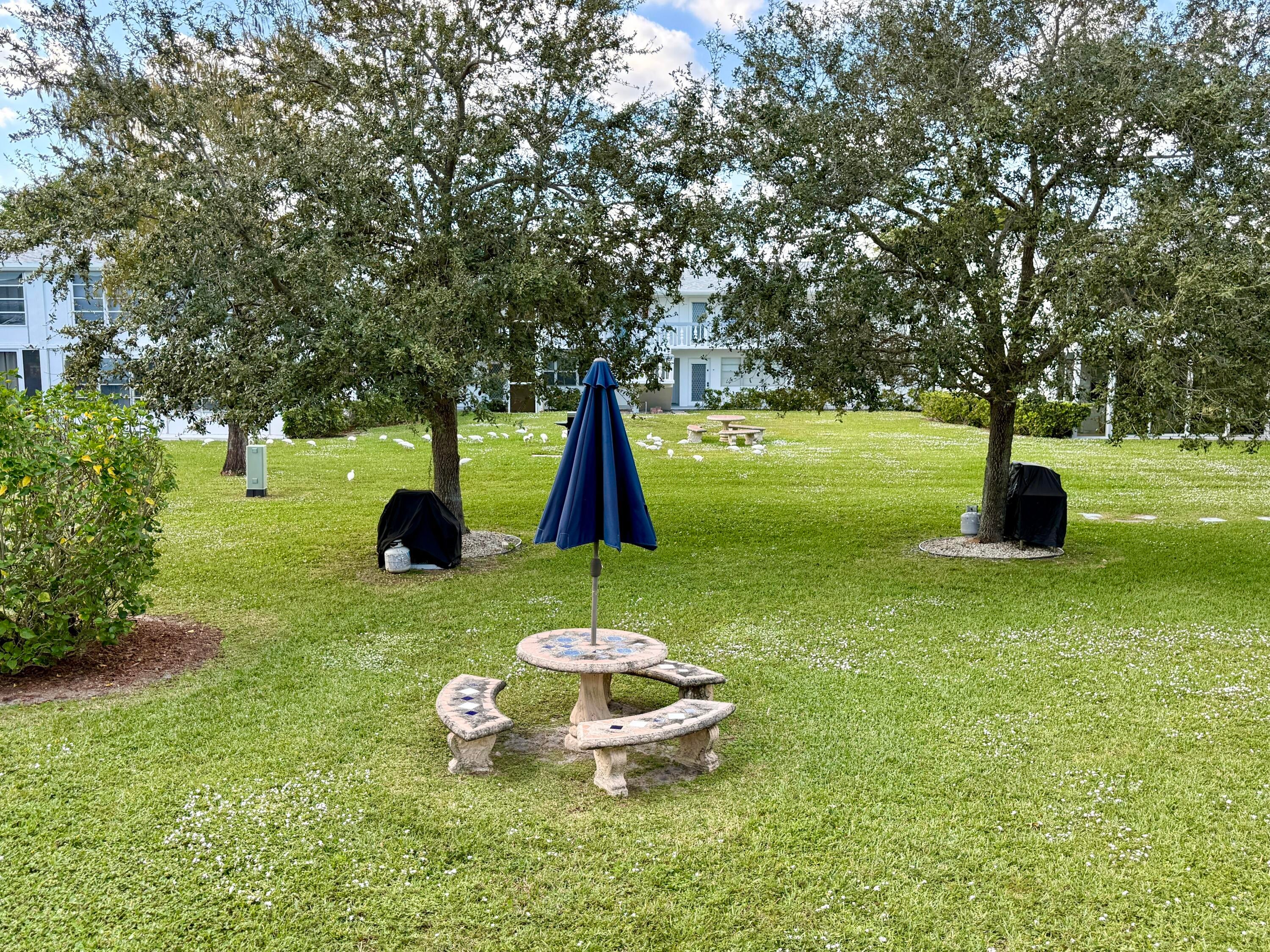 CORNER, Bright Condo with HURRICANE WINDOWS + Accordian Shutters. Furnished 2 BR 1,5 Bath, 820 SF. Well maintained Building - Roof Recently Replace. Garden View from Enclosed Patio. Enjoy Lovely Community BBQ area. Come see what this condo has to offer. Walking distance to outdoor pools. Clubhouse extrodinaire has Indoor & Outdoor Pool, Cafe, 1600 Seat Theater, Clubs, Classes, Billiards, Tennis, Pickleball, Volleyball, Ping Pong, Bocce Ball, Shuffle Board, Fitness Center, Hiking Trails, Putting Green, Bike Trails & more. Close to Beaches, Entertainment, Dining, Shopping. Association claims 55+ community. Approval required.