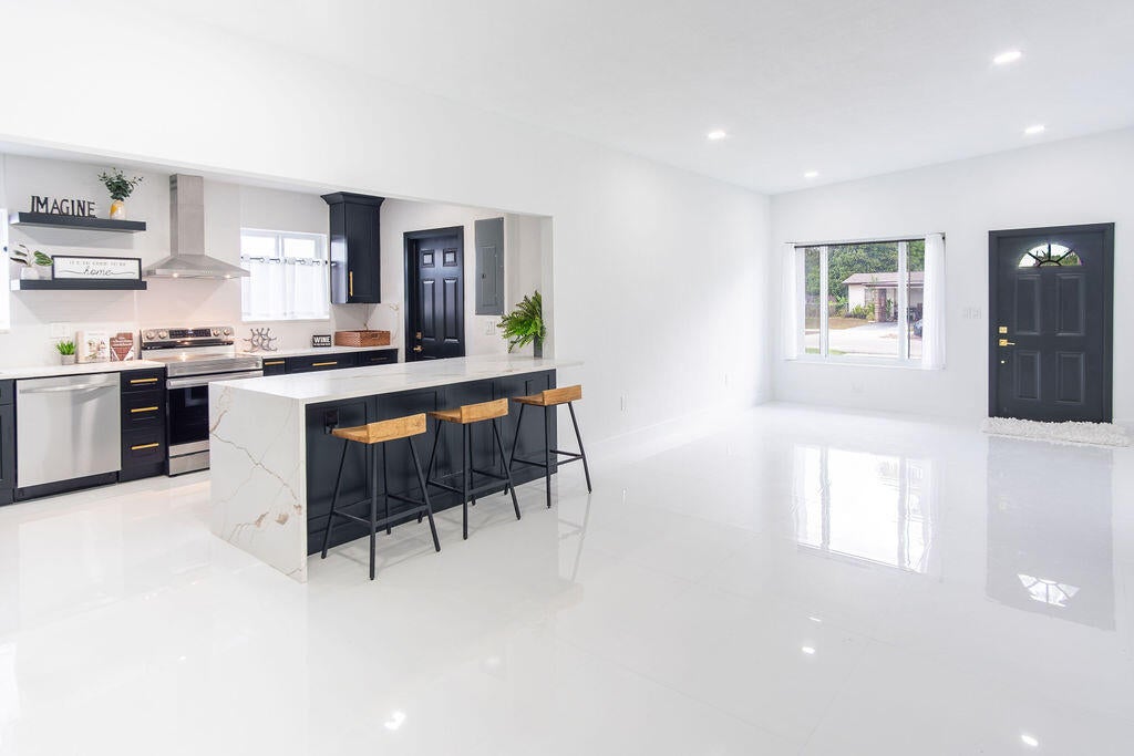 GORGEOUS!!! FULLY RENOVATED 3 BEDROOM 2 BATH SINGLE FAMILY HOME WITH ATTACHED GARAGE - MOVE-IN READY! This stunning home features an open floor plan centered around a modern kitchen complete with quartz countertops and new SS appliances. It boasts stylishly renovated bathrooms and pristine white tile flooring. Master suite is enormous with beautiful private bathroom. Everything updated including brand new washer & dryer, new water heater, and new central A/C. The large backyard with tiled patio is completely fenced and ready for outdoor entertaining, pets, and children's play sets. Fantastic location just minutes from happening Downtown Hollywood & our fabulous beaches!