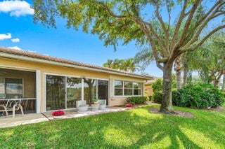 Waterfront oasis in East Delray- entrance on Atlantic Ave! This beautiful, ALL-AGE UNFURNISHED end unit villa, gated, PET friendly, just painted! Location minutes to downtown Atlantic Av,. Light, bright, spacious. Villa is offered ANNUAL, unfurnished & features a new open kitchen with luxury stainless steel appliances, granite countertops, breakfast bar--perfect for everyday living/entertaining. Separate dining area and split floor plan for house guests/ privacy. Enjoy peaceful lake views from the living room, master bedroom, and the enclosed patio turned into a Florida Room with an amazing view which includes sliding glass doors for climate control, great for a den, home office, play room. The home includes 1-car gar+ 2 driveway spots!! Close to Houses of Worship and schools.