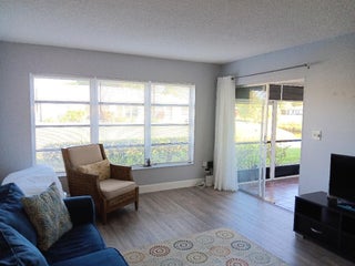 This first floor Condo has large living room and master bedroom. NEW kithen cabinets and appliances, NEW floors. Screened in patio off MB and living room. Low condo fees includes water, HBO cable and Internet, reserve funds. Community has brand NEW million dollar CLUB HOUSE and pools.Washer Dryer, large walk in closet in MB.Two minutes to shopping plaza, 10 minute to downtown Delray and the beach. Homestead will sae you @$1,000.