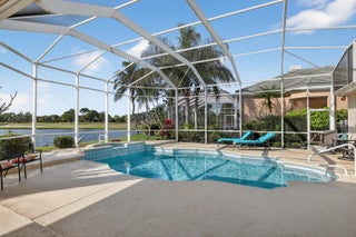 STUNNING water and golf views with New Roof installed 2025. This property will not last long! Spacious 3350 sq ft 3BR + office, 3 full/2 half bath home in the gated Ballantrae community. Set on the St Lucie River with access to a yacht club and numerous community amenities. Features 12-ft ceilings, custom crown molding, fireplace, and an open kitchen/living area leading to the screened pool and spa overlooking wide water views.The expansive primary suite offers two large walk-in closets and a bright sitting area. A dedicated office provides an ideal work-from-home space. Tropical landscaping and resort-style outdoor living complete this exceptional property. The highly sought after community is close to shopping and a short drive to beaches of Hutchinson Island. Ideal for snowbirds!