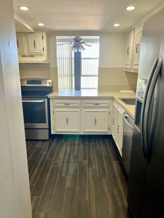 Beautiful and spacious 1BR/1.5BA condo in desirable Three Islands! This bright 4th-floor unit offers approx. 1,050 sq ft with floor-to-ceiling windows, porcelain floors, a large bedroom with walk-in closet, and a private north-facing balcony. Enjoy a well-kept kitchen with pantry, garbage disposal, and newer appliances, plus excellent storage throughout. Community amenities include a waterfront pool, laundry on each floor, high-speed internet and water included, and one assigned parking space. Safe, quiet area close to Joseph Scavo Park, shops, dining, and less than 1 mile to the beach.