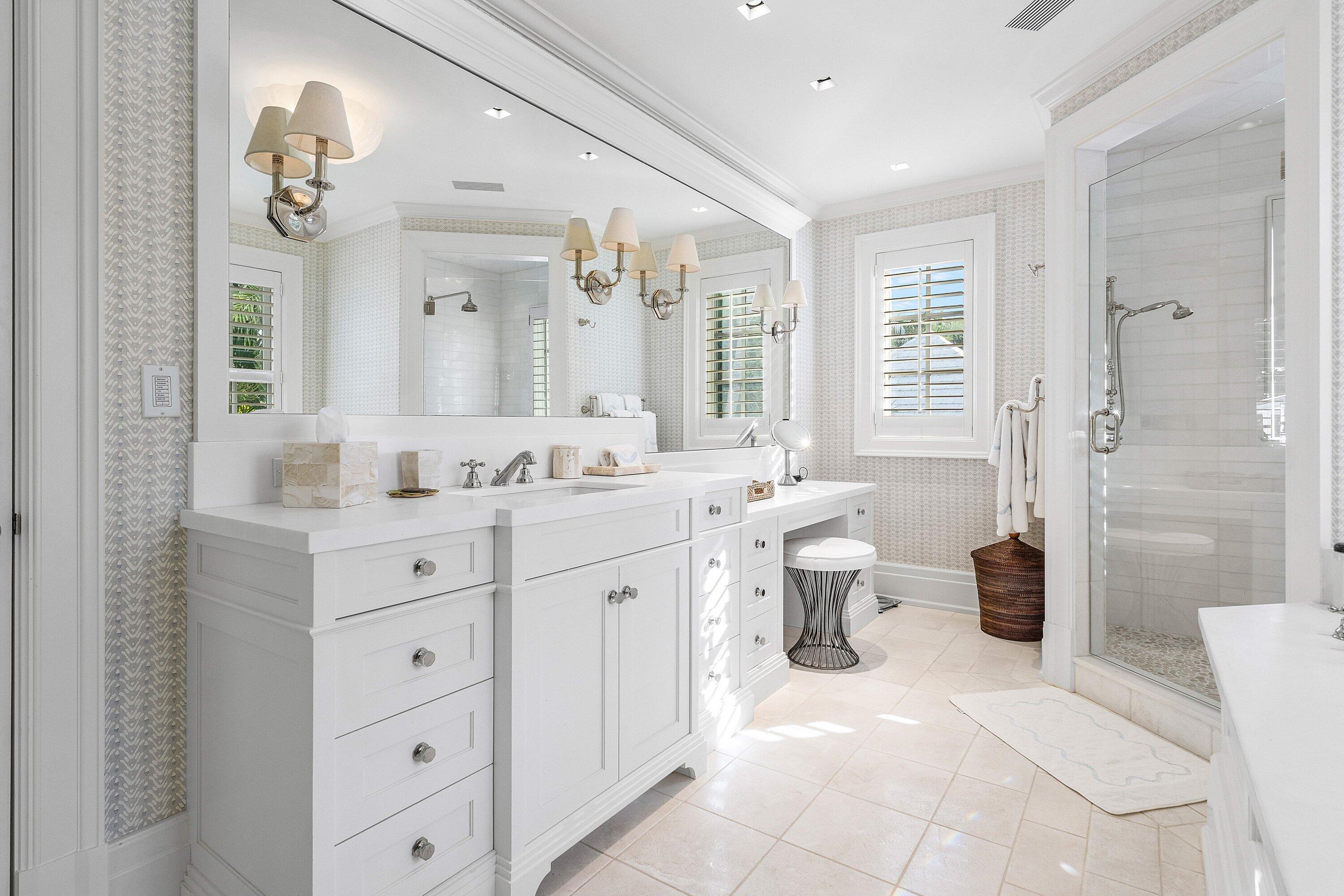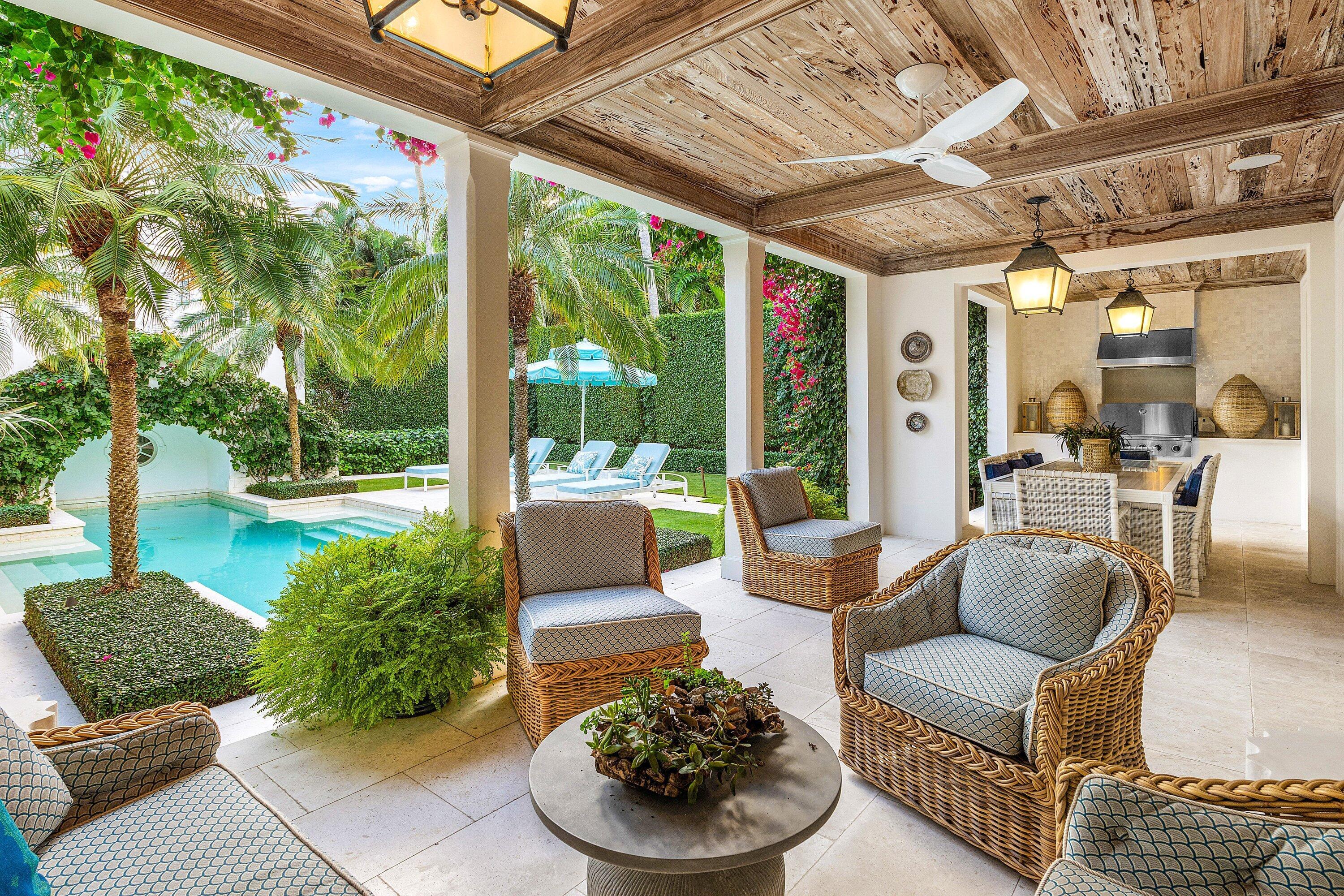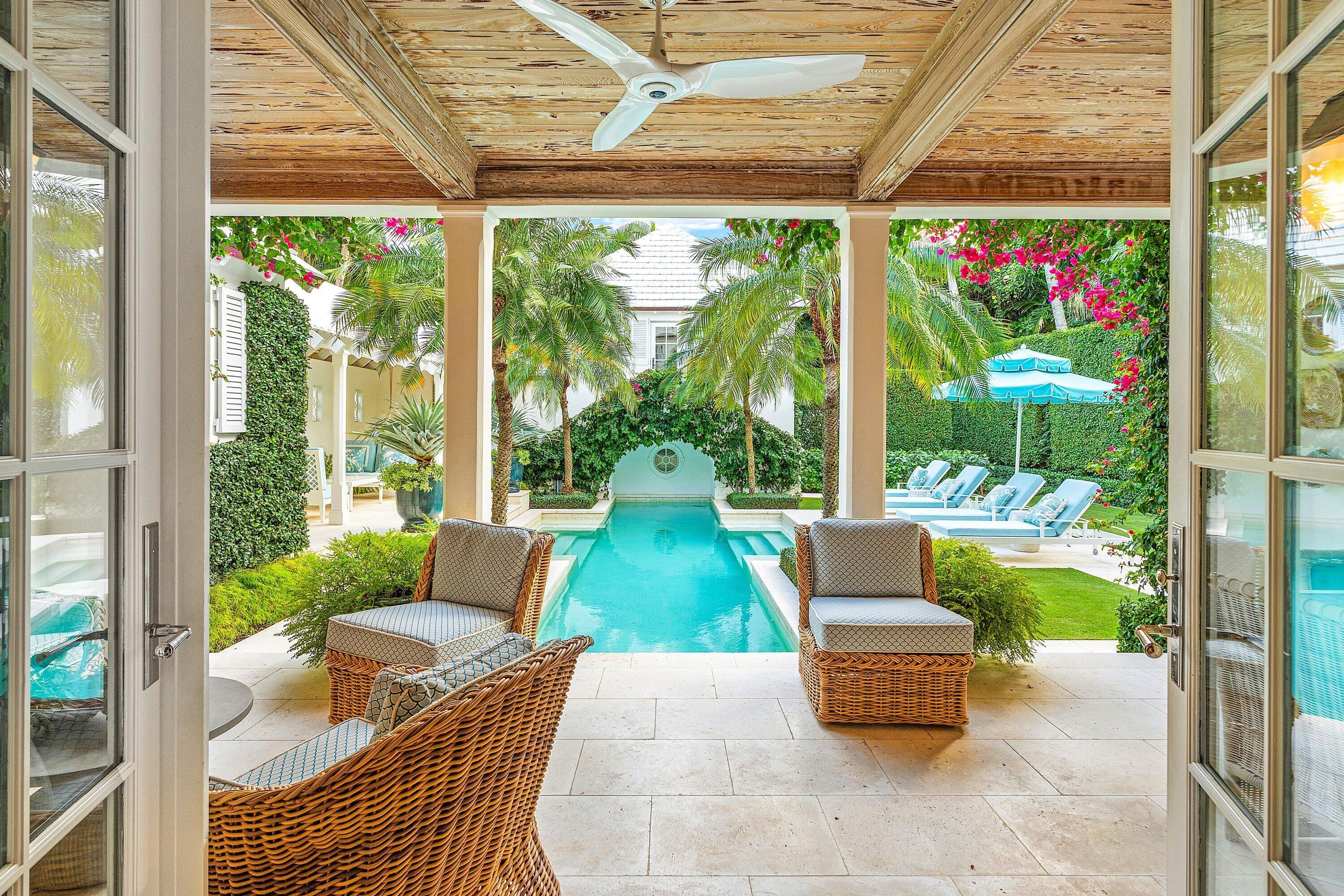 Beautifully renovated Cape Dutch Colonial-style home designed by the late Raphael Saladrigas on a prime North End street, featuring a main house plus guest house, new roof, new A/C with linear air registry, new lighting, and refined interior updates throughout. Highlights include the iconic Chippendale staircase railing, primary his and hers bathrooms, Pecky Cypress ceilings in outside loggia, elevator, bright living spaces, and lush landscaping designed by Nievera Williams. Located steps from the Lake Trail and just moments to beach access off Wells Road. Placed in the top homes on the Garden House Tour, this property offers timeless Palm Beach charm with modern comfort. The beautiful interior captures the pure essence of Palm Beach with no attention to detail lacking.