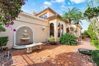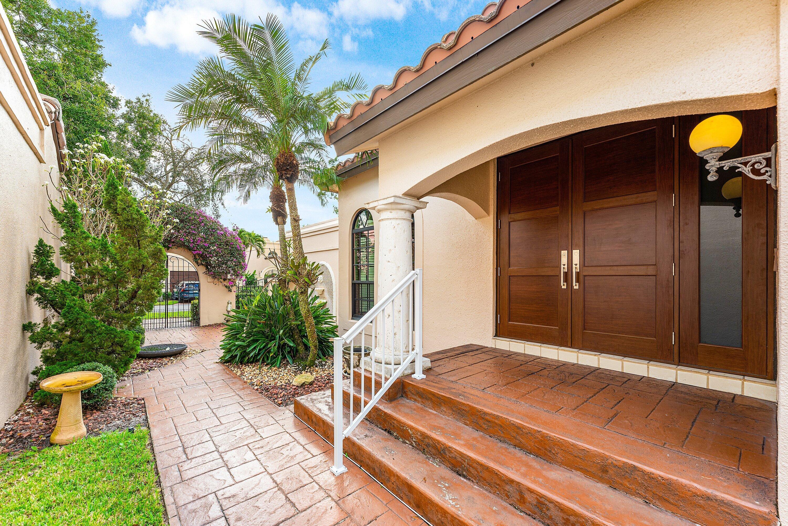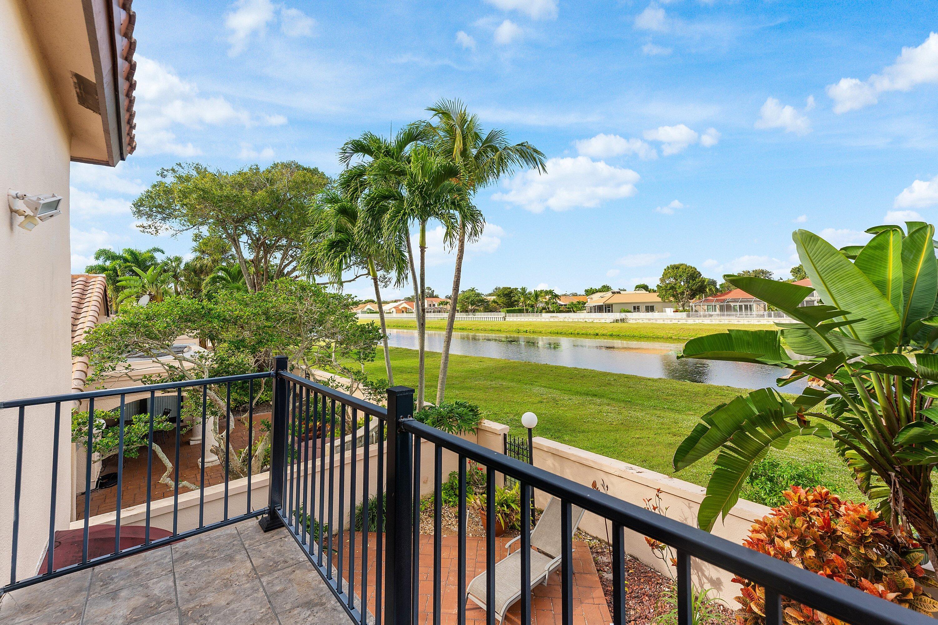 Villa D'Este - prized gated community in Deer Creek, non-mandatory golf club. Much loved home ready for new owners to make it their own. IMPACT GLASS. Mediterranean courtyard entrance, back garden on the Hillsboro Canal. Two story architecture with dramatic ceilings and fireplace. Upstairs is the oversized primary bedroom / bathroom with balcony overlooking the water and another bedroom with ensuite bath. Downstairs are 2 bedrooms and one full bathroom. Open island kitchen, breakfast room and family room. Spacious living and dining rooms surrounded by garden views.Newer Impact front doors, newer garage doors, roof 2016, flat roof resealed 2022, oodles of closet space plus under the stairs storage.Quick walk 2 doors down out back gate to River Park on the Hillsboro Canal.One downstairs bedroom can be an office / den if preferred with a double door entrance off the foyer. It has a small closet which could be enlarged. Primary bedroom upstairs has room for an in room sitting area or home office. Great location between 95 and the Turnpike, only 5 miles from the beach. Amenities include 24-hour manned gated entry, lush landscaping, and access to the Deer Creek Golf and Country Club. NO MANDATORY membership fees. Deer Creek is a semi public golf course and public restaurant.