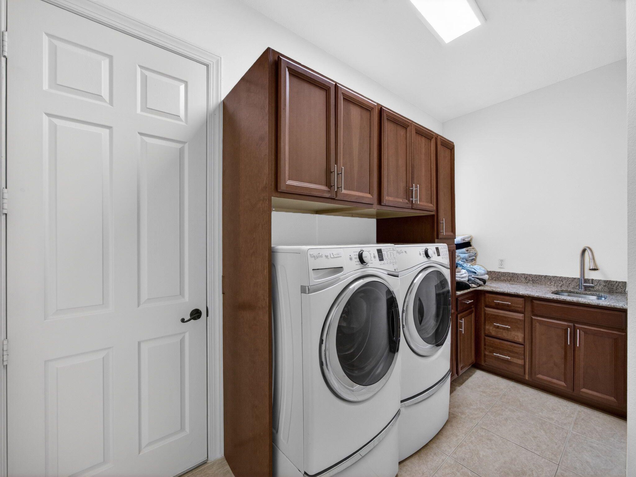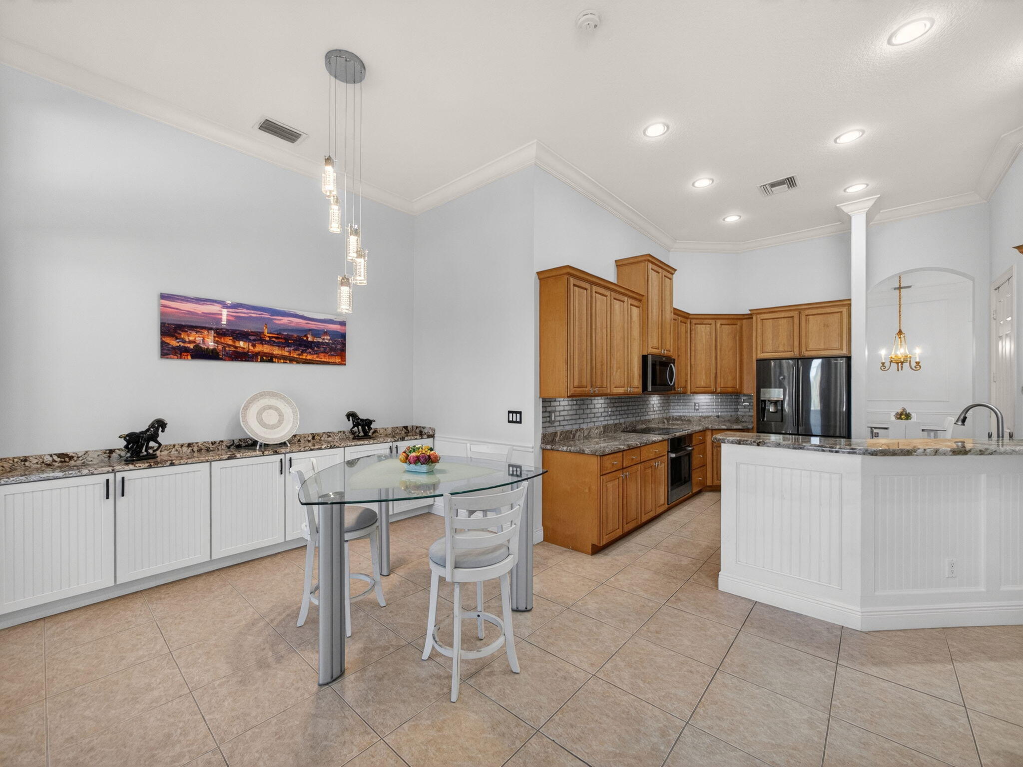 Tucked away on a rarely available, exceptionally private lot at the end of a quiet cul-de-sac near the front of PGA Village, this beautifully maintained 3-bedroom + office, 3.5-bath pool home features a freshly painted interior (2026), a brand-new kitchen backsplash, a new modern chandelier in the dining room, a new master bedroom A/C unit, and a gas-heated pool and jacuzzi. Additional highlights include a saltwater pool system (2024), a new A/C system (2024), a newly painted front door (January 2026), and the longest driveway on the club side, offering parking for up to eight vehicles. Designed for both luxury and flexibility, the home blends thoughtful upgrades, everyday convenience, and exceptional privacy in a truly tranquil setting.The inviting kitchen showcases granite countertops, stainless steel appliances, and a sunlit breakfast area that opens seamlessly to the expansive great roomideal for both casual living and entertaining. The elegant formal dining room makes a striking impression and can easily be converted into a home office or additional bedroom to suit your needs. A custom designer bar adds the perfect touch for hosting memorable gatherings. Timeless architectural details, including crown molding, picture-frame molding, and wainscoting, add refined character throughout the home. Each bedroom features its own private ensuite bath, providing superior comfort and privacy for family and guests. Step outside to your private backyard oasis and enjoy the peaceful surroundings of this expansive lot with minimal neighboring exposurea rare find offering exceptional seclusion. Despite its serene setting, the home is just minutes from championship golf courses, resort-style amenities, top-rated dining, shopping, entertainment, the vibrant Tradition area, and everyday local conveniences.