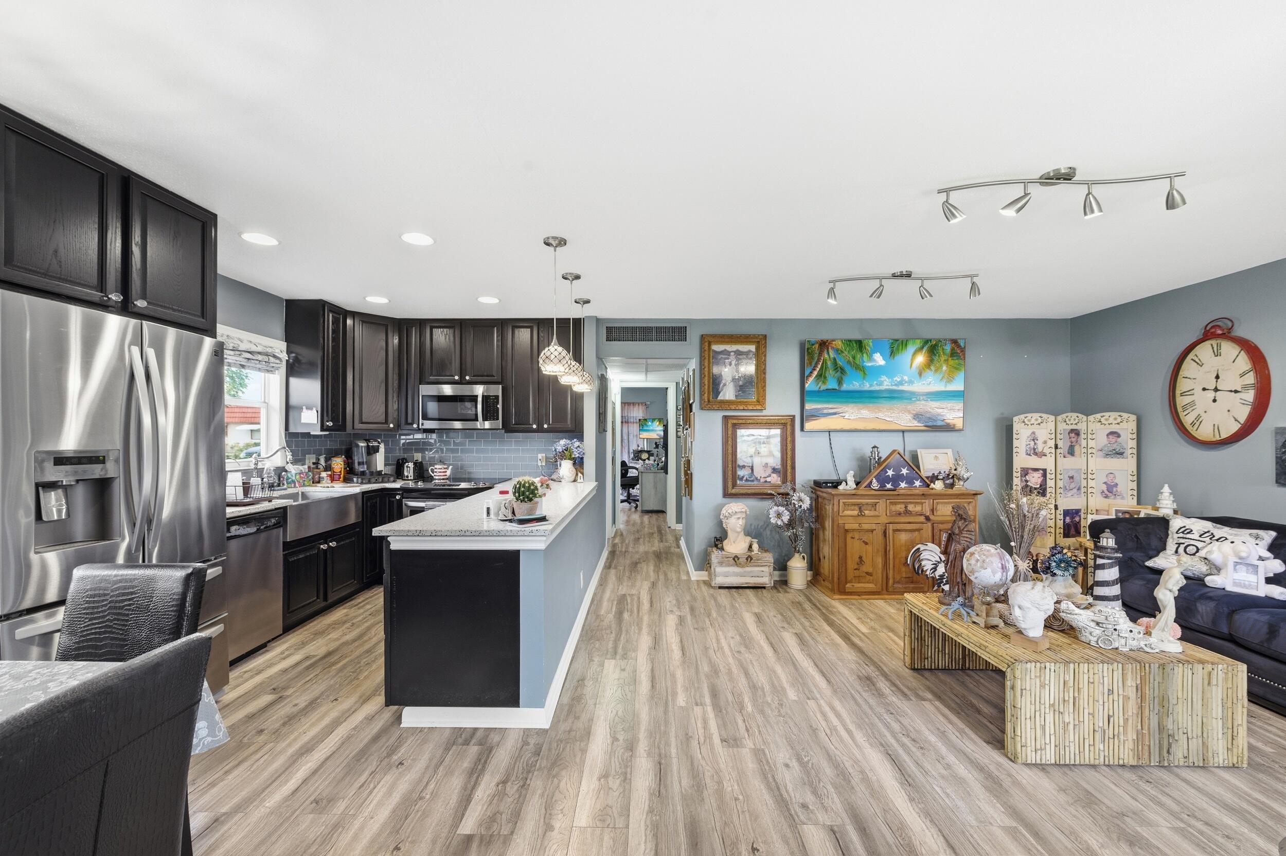 Absolutely stunning, fully updated ground-floor corner villa located in the prestigious 55+ Kings Point Golf & Country Club. This must-see residence offers tranquil, serene water views from the living room and is filled with natural light, creating a bright coastal-inspired atmosphere throughout. Enjoy complete peace of mind with a brand-new roof and no assessments. The beautifully redesigned designer kitchen features stainless steel appliances, elegant quartz countertops, and a striking tiled backsplash, making it perfect for both everyday living and entertaining. Throughout the home you'll find no popcorn ceilings, all updated lighting fixtures, and recessed lighting that enhance the clean, modern feel.The spa-like bathroom has been completely renovated and showcasesfloor-to-ceiling tile, a sleek glass shower door, and an updated vanity with modern finishes. The spacious primary bedroom offers a relaxing retreat with a large walk-in closet and ample storage. An enclosed patio adds valuable living space and includes full-size laundry, providing both comfort and convenience. As a corner unit, this villa offers added privacy and a quiet setting, while ground-floor living allows for easy access with no stairs. Ideally located near the main clubhouse and close to the community entrance, this home offers exceptional convenience within the community. Residents enjoy world-class amenities including golf courses, resort-style pools, fitness center, theater, restaurants, cafés, clubs, and endless social activities. The location is unbeatablejust minutes from all major shopping, dining, medical facilities, and with easy access to major highways. This move-in-ready villa combines style, comfort, and the best of South Florida resort-style living.