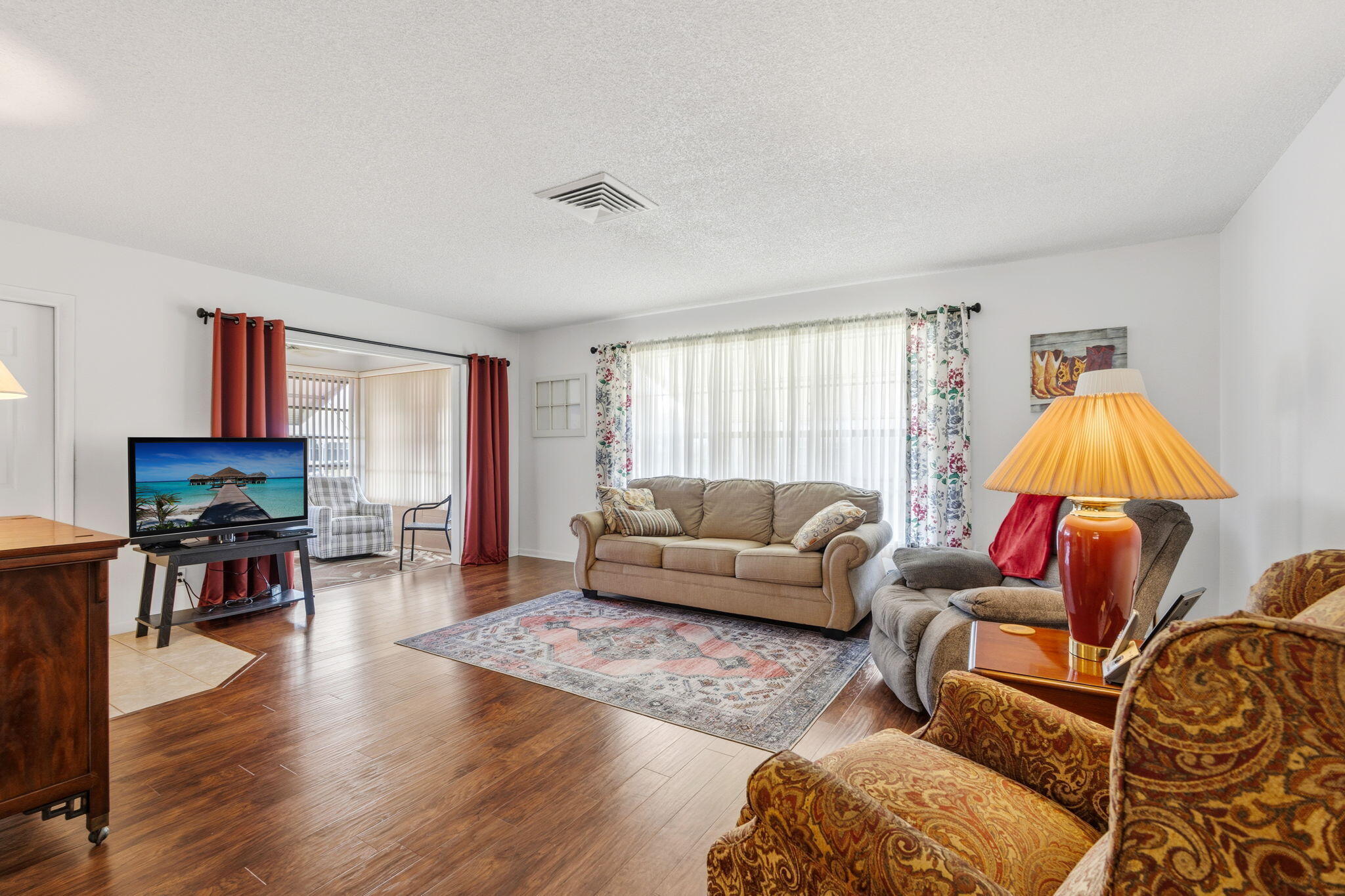 This lovely 2 bedroom / 2 bath is located in High Point, one of Fort Pierce's cherished 55+ Senior Living Community. This private and gated community is centrally located in Fort Pierce close to shopping and within minutes from the beaches. This spacious condo offers incredible move in ready comfort at an unbeatable price! Enjoy year-round Florida living in the air-conditioned Florida Room. Selling furnished and ready to move into. Peace of mind is included with a new roof completed by the Association in 2023. Inside the unit, you will find beautiful updates like new wood flooring in the living room and tile throughout the rest of the home. Relax under oaks on your back patio with a peaceful view of the lake. Make an offer today!The seller wants this gone! Make your offer today!