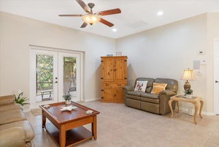 Located in the desirable Rock Ridge community, this well maintained 3 bedroom, 2 bathroom home offers peace of mind, efficiency, and flexibility on a double lot, with no HOA restrictions. Built with ICF construction, the home features eight inches of solid poured reinforced concrete with interior and exterior insulation, delivering outstanding energy efficiency, storm resistance up to 250 mph winds, and significant insurance advantages. The home is also elevated above flood level, helping reduce flood insurance premiums.Inside, the open concept split floor plan is complemented by volume ceilings measuring approximately 9.5 feet, tile flooring, plantation shutters, and abundant natural light.The kitchen features 42 inch custom cherry cabinetry, Corian countertops, and a layout ideal for everyday living and entertaining. Major updates include new appliances, interior and exterior paint, and light fixtures in 2025, a new water heater in 2024, and A C replaced in 2020. Additional highlights include a large screened porch, spacious two car garage, and an oversized attic offering potential for future loft or second floor expansion. Ideally situated approximately 1.8 miles from downtown, about 1 mile from Miracle Mile shopping and dining, and less than 3 miles from the beach, this home offers a rare combination of superior construction, larger lot, and an unbeatable location in a no HOA community.