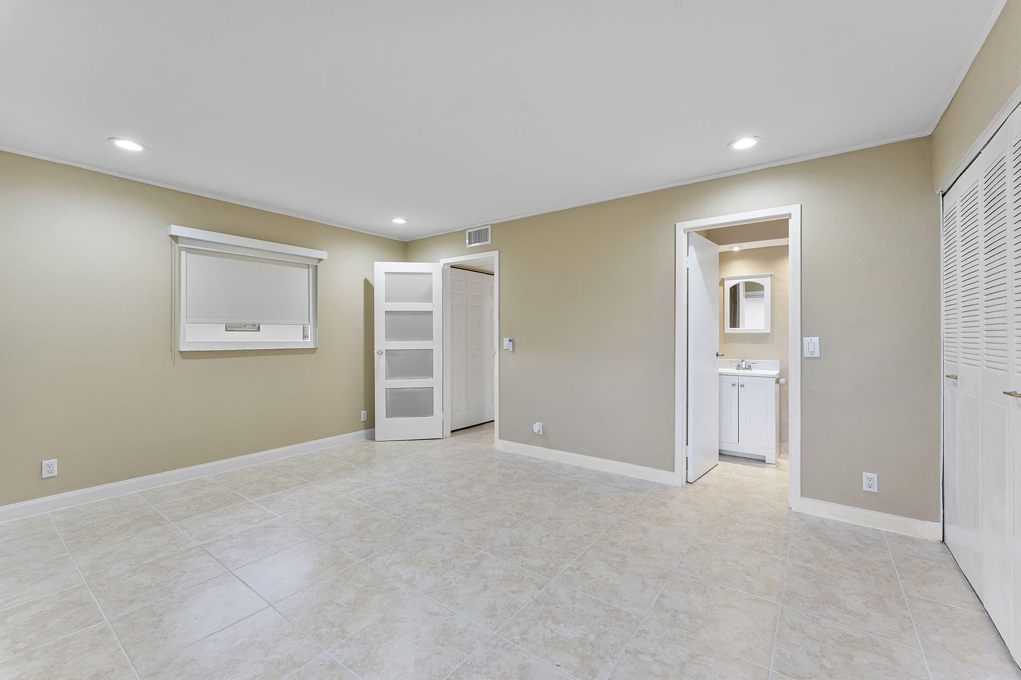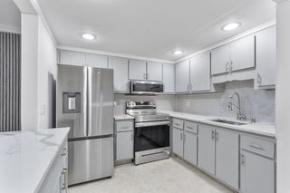 Experience stylish living in this beautifully renovated 1-bedroom, 1.5-bathroom condo situated in a building with a convenient elevator. The open-concept layout shines with sleek tile flooring and recessed lighting, leading to a contemporary kitchen equipped with quartz countertops, stainless steel appliances, and chic cabinetry. Relax in the spacious living area or step out to the private screened balcony, which connects directly to the primary suite featuring a modern en-suite bath. This turn-key home offers ultimate convenience with a guest half-bath, in-unit washer and dryer, custom closet organizers, and extra outdoor storage.