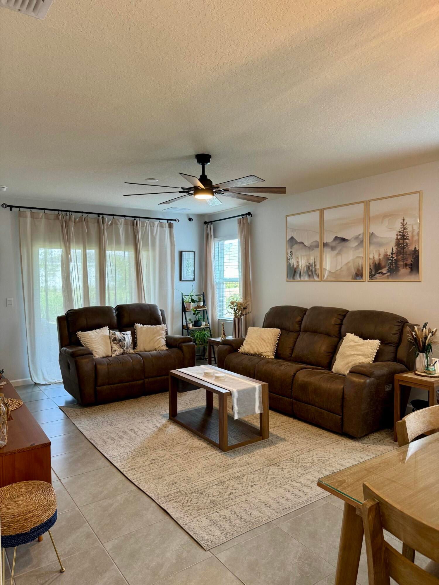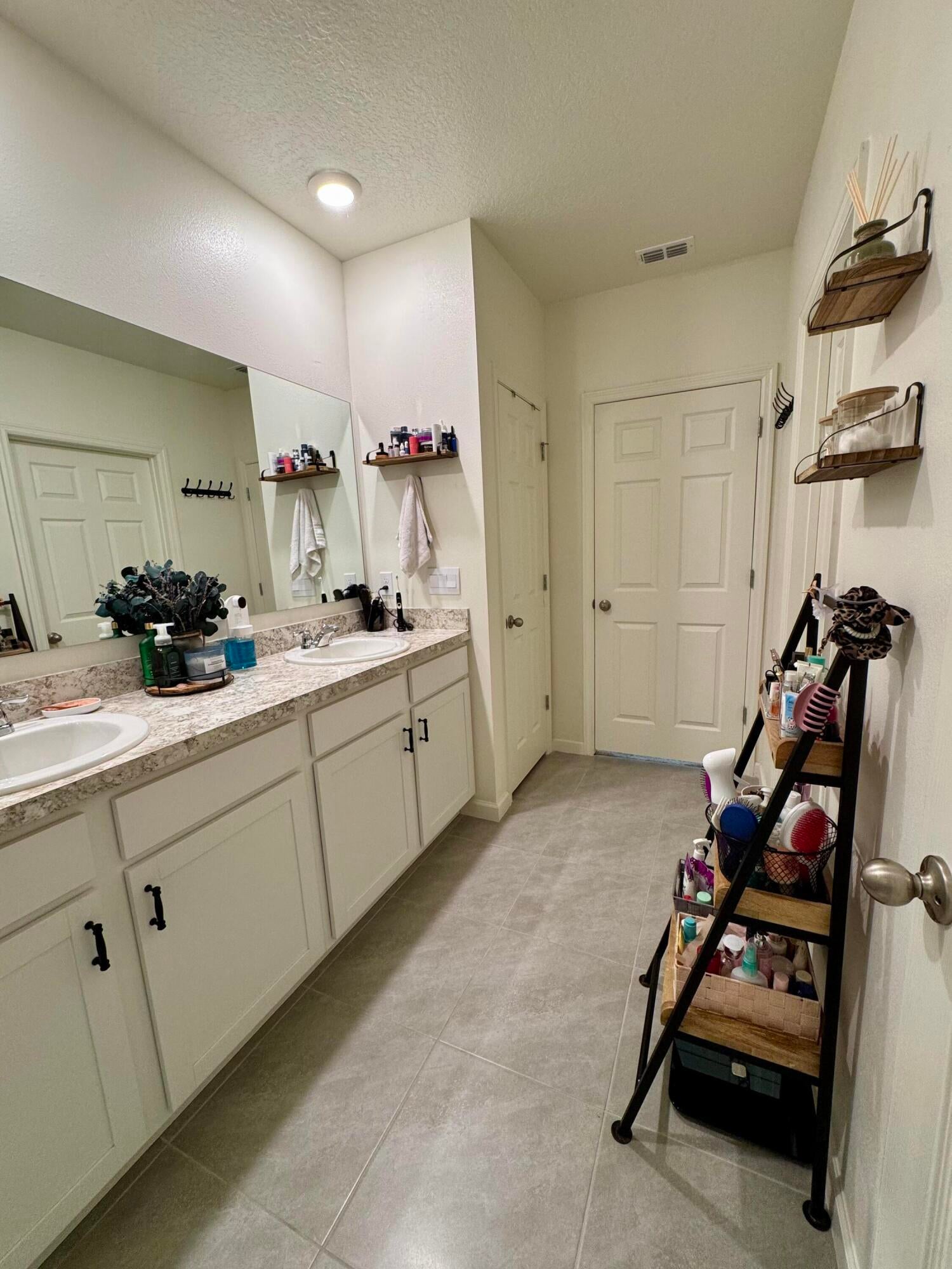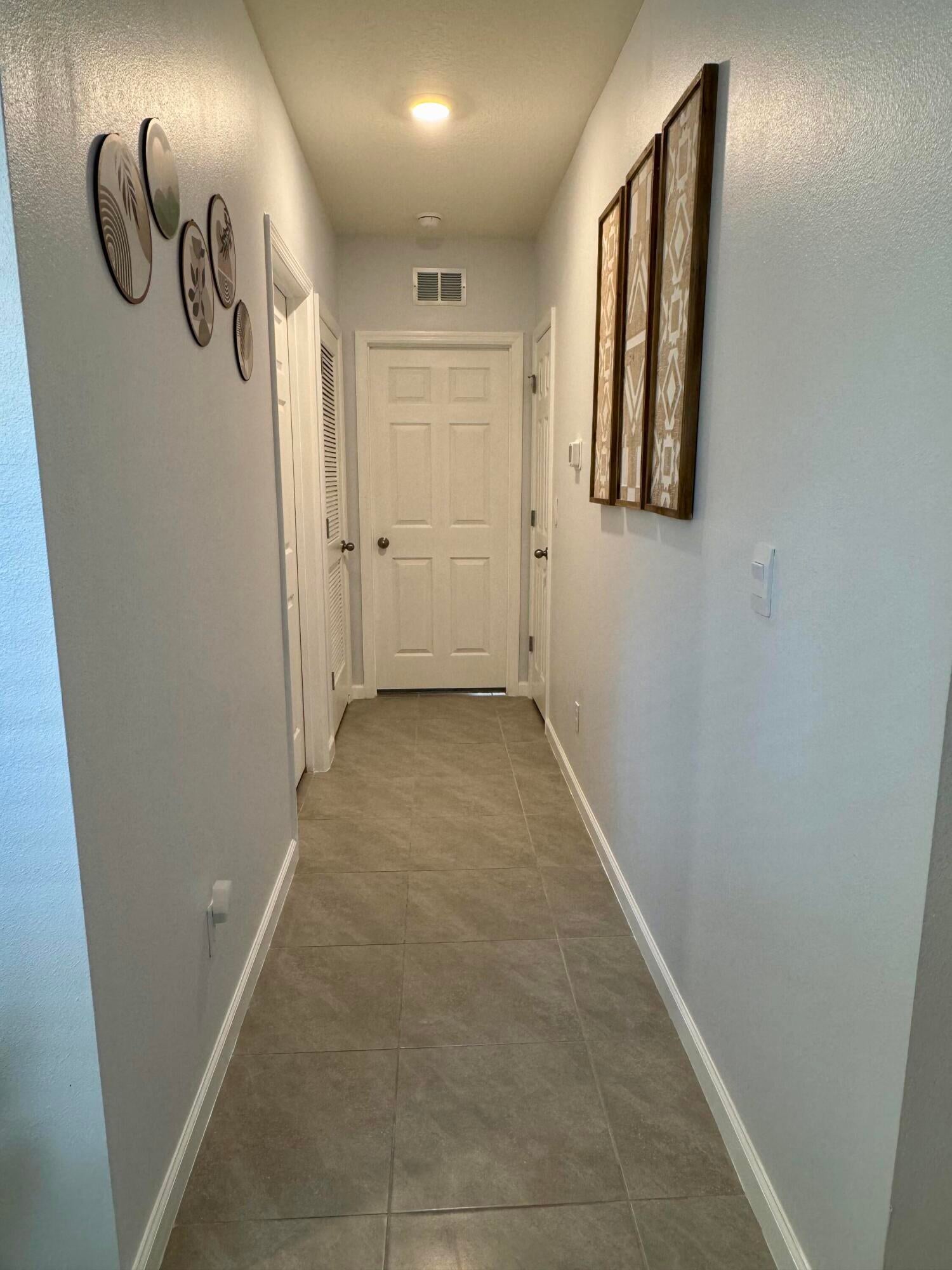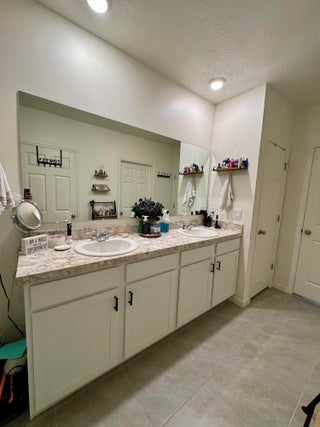 Welcome to this beautifully upgraded 3-bedroom, 2-bath CBS home with a split floor plan and 2-car garage in the desirable Central Park community.Highlights:(Modern kitchen with large island, cabinets with upgraded handles, granite countertops, stainless steel appliances, and oversized pantryGranite single bowl sink with matching dual function pull down faucet Tile flooring in main living areas & flex space; carpet in primary and secondary bedroomsCustomized primary closet and upgraded cabinet hardwareScreened patio for outdoor enjoyment Two ceiling-mounted garage storage units (one with adjustable height)Workbench with shelving for tool storage (removable if desired)Whole-house Brita water filtration system (Hurricane panels with hardware.