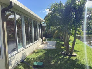 This home has a NEW roof and full impact windows. Modern open kitchen with granite countertops-stainless appliances, island into a living room with 2 new skylights. Large den with lots of natural light. Sliding door to 2 enclosed lanais with mini split air conditioners overlooks a gorgeous water view and lush greenery. Bathrooms with new walk in showers. Master bedroom closets with custom wood shelves. Important features: laundry room, popcorn free ceilings with crown molding and remote control ceiling fans, 1car garage, outdoor patios with beautiful travertine tile, double wide driveway. This extremely well maintained home is perfectly located on a quiet cul de sac and a short walk to pool and active clubhouse. Enjoy the convenience of nearby shopping, dining, and recreational options.