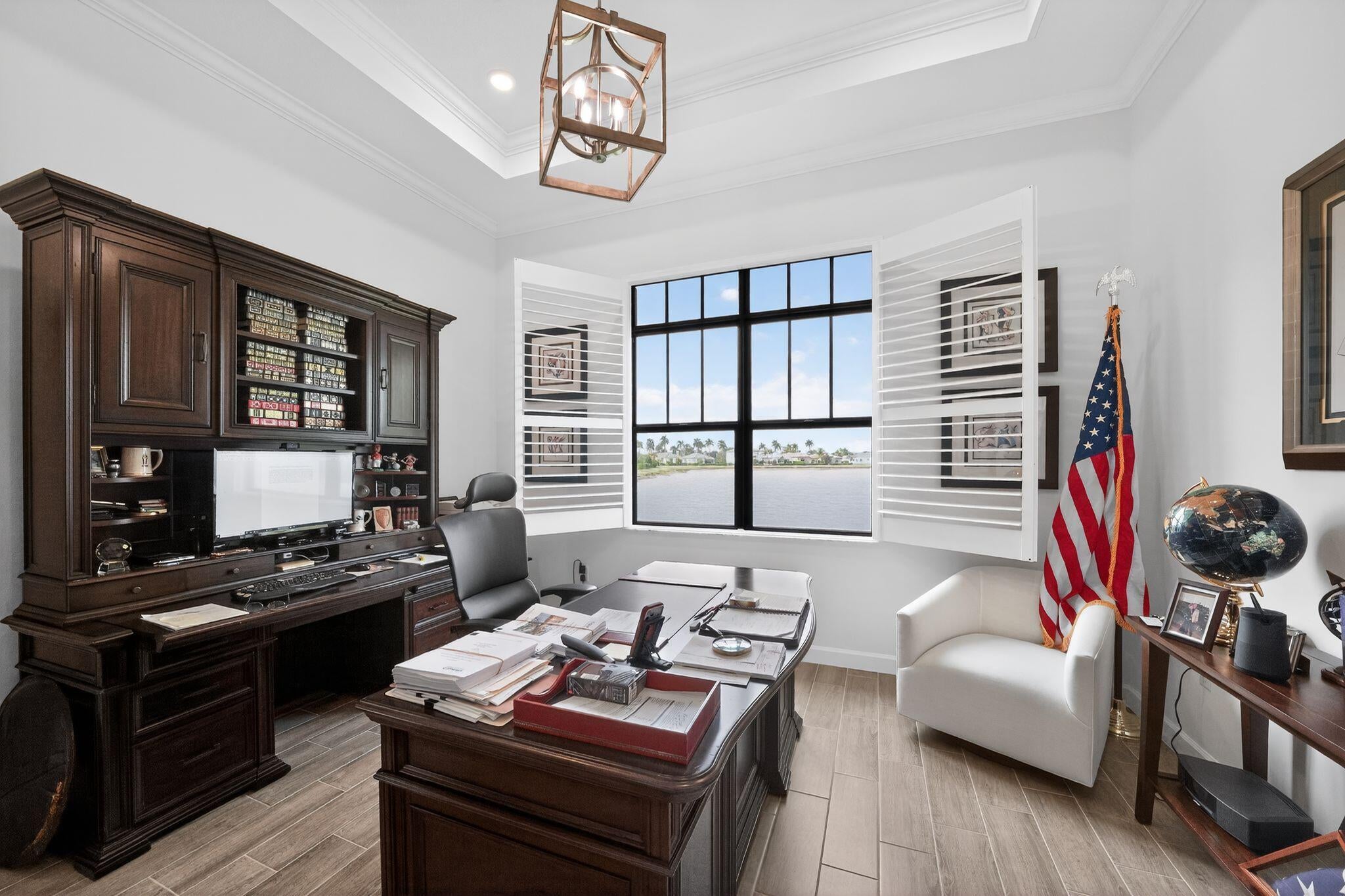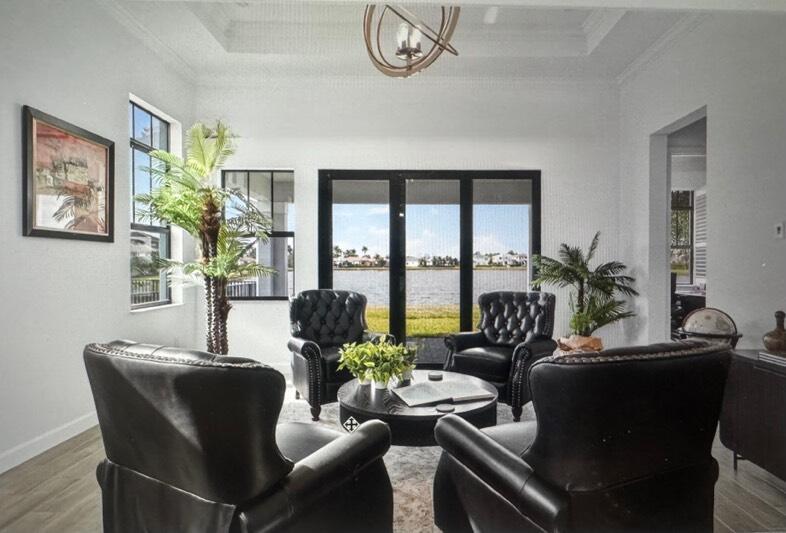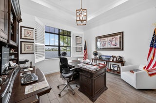 Nestled within a prestigious gated golf community, this beautifully upgraded Giulia model offers the perfect blend of luxury, comfort, and lifestyle. Overlooking a serene lake with breathtaking sunset views, the home features expansive glass sliders that open to a covered terrace, ideal for indoor-outdoor living and entertaining. Designed with an open and spacious floor plan, the residence includes 3 bedrooms, 2 full bathrooms, and a convenient half bath, along with a dedicated laundry room and double garage. A versatile flex space/den provides the ideal setting for a home office or additional living area. Thoughtfully enhanced with $39,000 in upgrades plus an additional $15,000 in custom window treatments and designer lighting, this home is truly move-in ready.Residents enjoy access to an 18-hole Arnold Palmer-designed golf course, with golf memberships available, making this an exceptional opportunity to embrace refined golf-course living in a secure, resort-style setting.