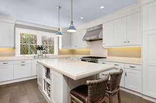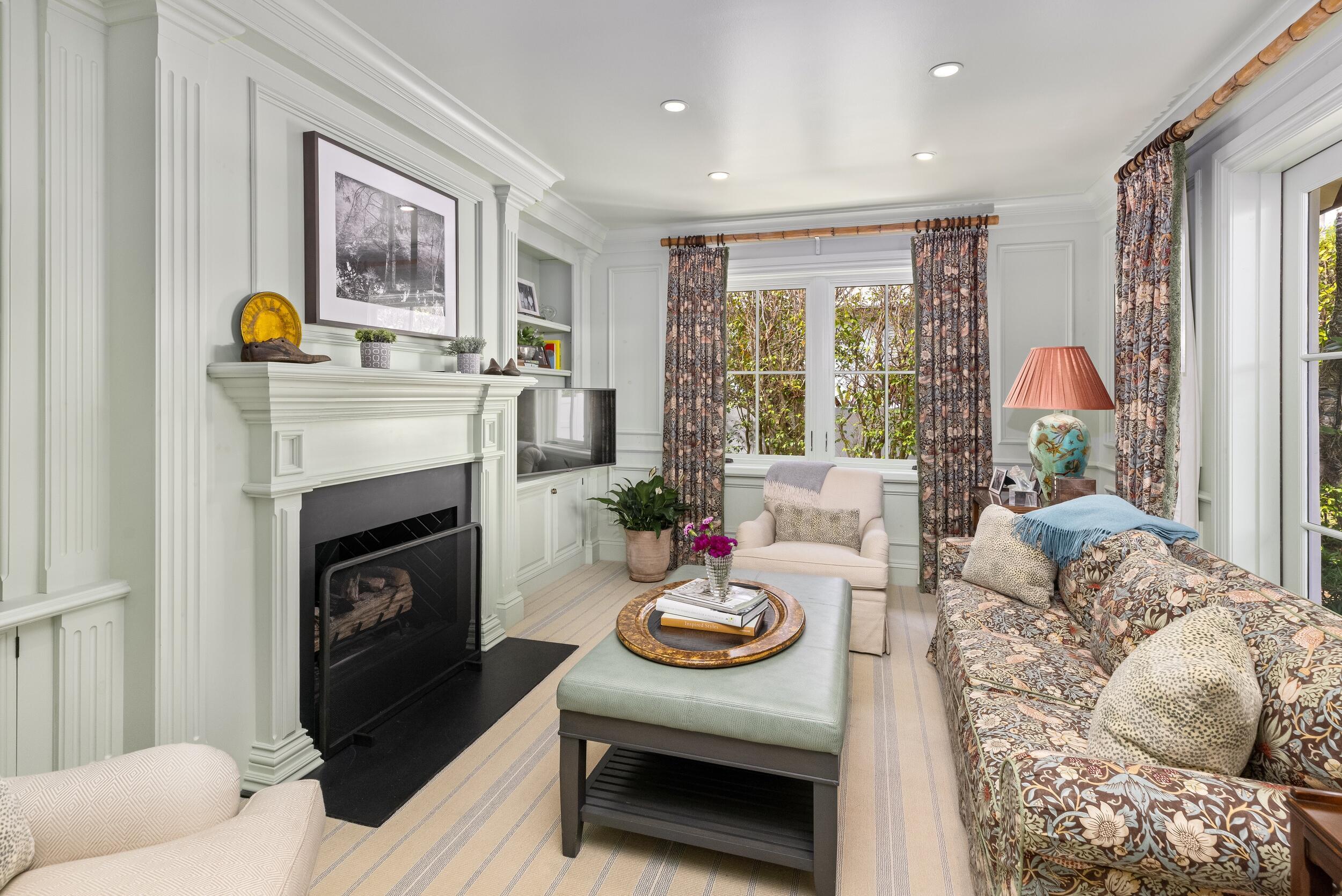 Gorgeous sunny and bright one story home. Soaring ceilings and stunning finishes throughout. Beautiful, oversized great room is perfect for entertaining. Chef's kitchen featuring breakfast bar. Pristine loggia with gorgeous vaulted ceiling and fireplace. Lush backyard featuring outdoor shower, pool, and tropical landscaping. Fantastic North End location on the South side of the road.