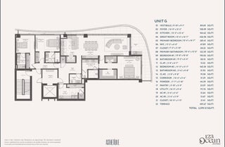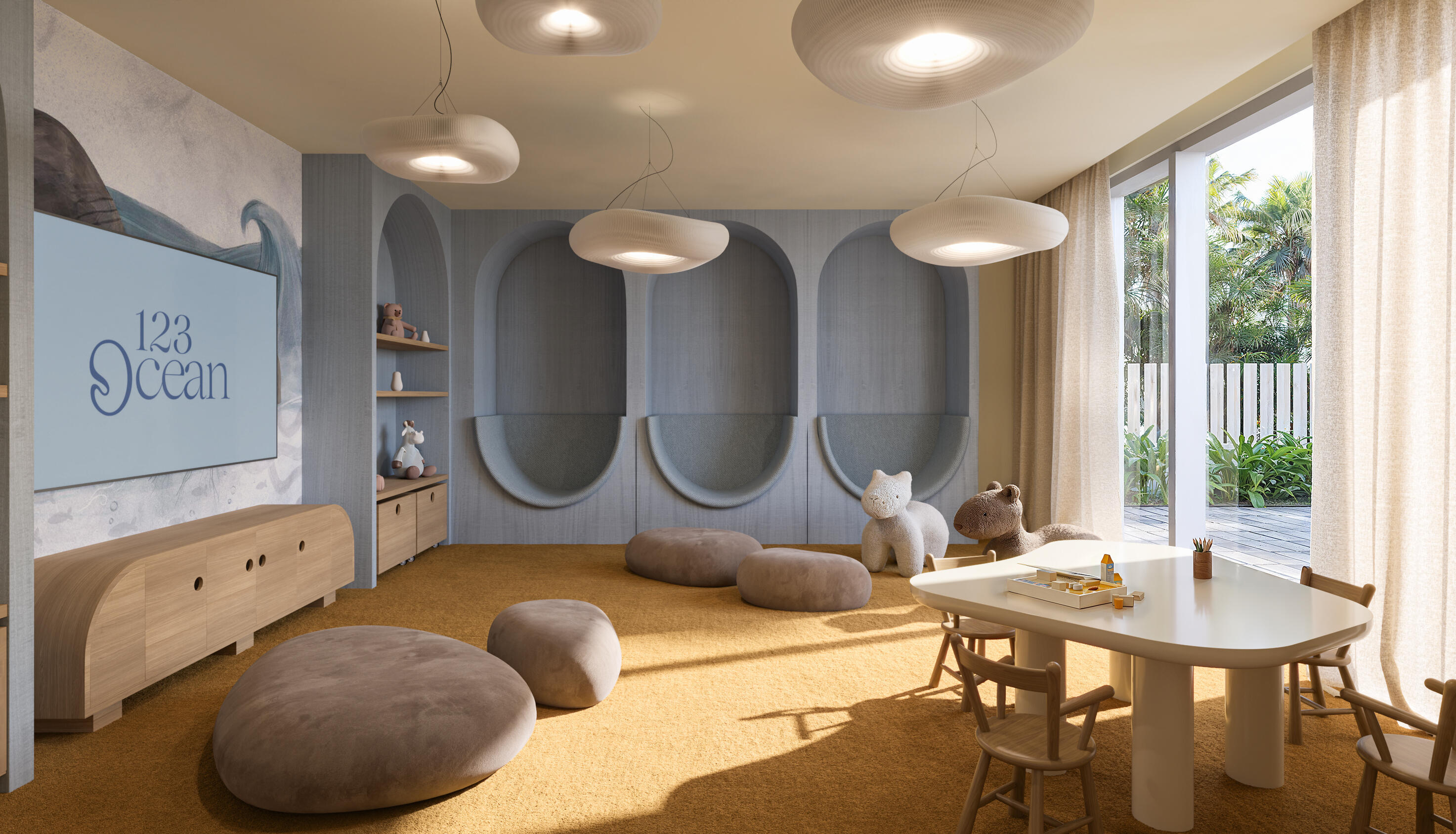 Introducing 123 Ocean.Oceanfront Serenity. Elevated Palm Beach Shores Living.Featuring an inviting open-plan layout with a wraparound terrace, this brand new 3-bedroom, 3.5-bathroom beach house offers a timeless coastal lifestyle close to dining, marinas, and stunning beaches. Exclusive ocean access comes via a dedicated direct walkway to the sand.White oak, woven straw, and soft brass create a refined interior aesthetic, while a direct elevator vestibule, split-wing bedrooms, and a limited number of homes per floor maximize privacy. Here, the ebbs and flows of daily life feel effortless, private, and composed. Nothing is excessive. Everything is intentional.An elegant foyer with a convenient powder room flows into a sun-splashed living room, dining room, and kitchen with a wet bar and two exposures. Sliding doors reveal a beautiful terrace with a summer kitchen, creating a seamless villa-in-the-sky indoor-outdoor experience. Residents can choose between two kitchen schemes suited to their lifestyle, needs, and personal tastes. Both minimalist styles are anchored by a sculptural stone peninsula and boast premium stone backsplashes, custom wood-veneer cabinetry, a walk-in pantry, and fully integrated Gaggenau appliances. The king-size primary suite enjoys a luxurious walk-in closet, a supplementary reach-in closet, and a sanctuary-like spa bathroom with a richly veined porcelain feature wall, a custom wood and stone double vanity, curved mirrors and lighting, polished metal fixtures, wall niches with built-in lighting, light-diffusing textured glass partitions, and a walk-in rainfall shower. The bright second and third bedrooms include reach-in closets and pristine en-suite bathrooms with a deep soaking tub or walk-in shower. Finishing the home is a thoughtful laundry room with a utility sink, storage, and a side-by-side Bosch washer and dryer. 123 Ocean is an exclusive six-story oceanfront boutique residential collection brought to life by an all-star team consisting of Lionbright Development, Arquitectonica, Asthetique, and Naturalficial. Gorgeous amenities range from arrival and building services to curated wellness and lounge spaces. Residents are welcomed by a refined porte cochère and a 24/7 attended lobby with a dedicated mail and package room. Covered underground parking is secure and maintains an elevated pedestrian environment. The resort-style pool and sun deck are gorgeous communal escapes, and the boutique fitness studio is complemented by an infrared sauna, ice bath, and treatment area. Additional highlights include a resident lounge, children's playroom, media room, and conference room. Numerous restaurants and shops are moments away, and Palm Beach City Center and Palm Beach International Airport are just a 20-minute drive.