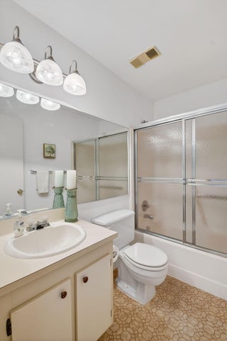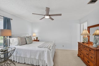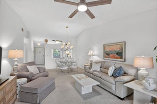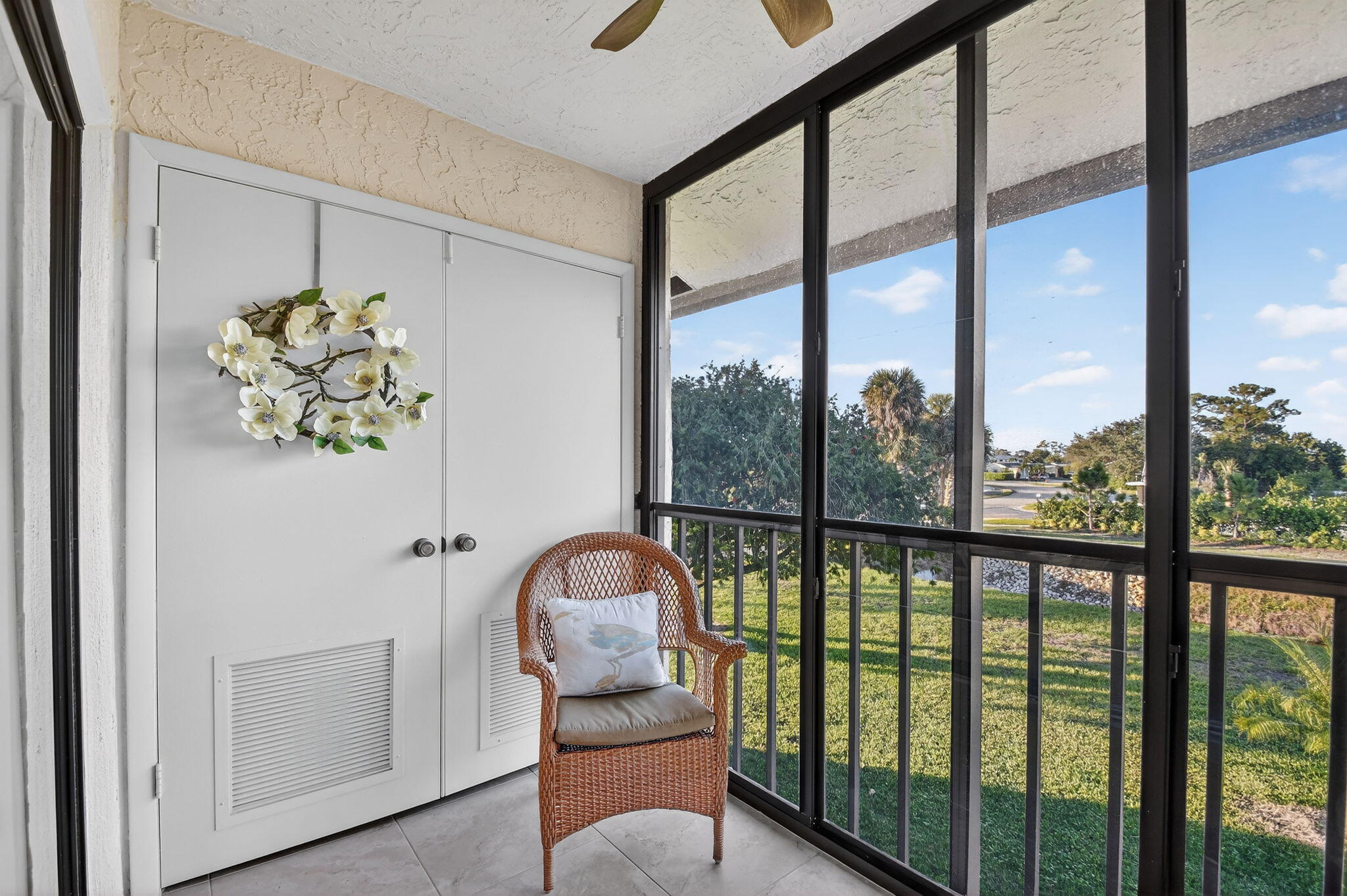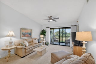 The one you've been waiting for !!! This light and bright freshly painted second floor condo is turnkey furnished for your enjoyment. Staged by a professional designer, it shows beautifully and is truly move-in condition. Located in the desirable eastern section of Golf Colony, it enjoys a private location and relaxing view from the living area and enclosed Florida room. A short walk to the satellite pool and lots of guest parking for your convenience. Buy with confidence as this 2-story building is exempt from new engineering and reserve requirements. This is a great investment opportunity, with expected future appreciation (Mattamy ''Forest'' new townhomes selling from 480K+ and single family from 650K+ in neighborhood). Immediate rental is allowed in this bldg also. No pets except ESA