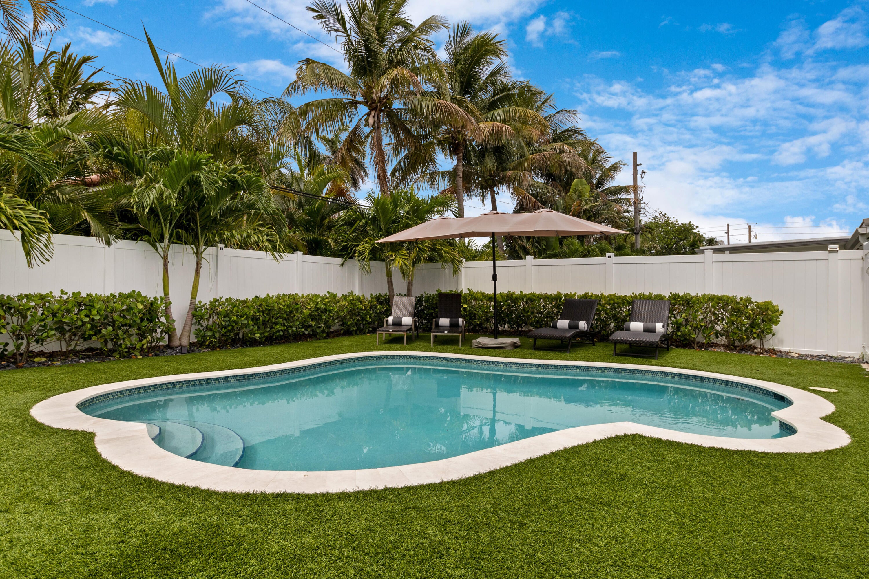 Live the Lighthouse Point lifestyle just steps from Cap's Place and Frank McDonough Park! This fully SOLAR-powered (owned solar) 4 bed, 4 FULL bath home blends cutting-edge technology with elevated coastal comfort, boasting over 2,600 sqft of living space, ideal for entertaining. The chef's kitchen stuns with a leathered honed quartz island, 8-burner GAS RANGE (120-gallon tank), oversized 66'' built-in refrigerator and freezer, MIELE BUILT-in COFFEE system, and wine fridge. Bright, open-concept living areas feature white oak engineered hardwood flooring and a sleek ventless bioethanol fireplace. Dual A/Cs (2024 & 2011), two tankless water heaters (2021), IMPACT WINDOWS, updated electrical panels and PVC PLUMBING to ensure peace of mind. Love the furniture too? Furniture can beincluded in the sale for a turnkey experience, if desired. Outside, enjoy a resort-style SOUTH FACING EXPOSURE backyard with premium synthetic turf, a 3-hole putting green, HEATED saltwater pool, newly insulated pergola, and full outdoor kitchen. Home includes 3 high-capacity backup batteries (up to 4 days of off-grid power), and EV charging station (220V). Double primary shower, beautifully updated baths throughout, and an expansive layout complete this exceptional offering in one of Lighthouse Point's most desirable walkable pockets. The home has been a successful vacation rental and can easily continue generating income if you're looking for an investment or part-time use.