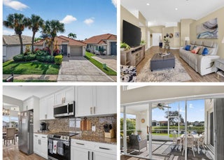 Welcome Home to this stunning 3 bed 2 bath Lakefront Beauty! This home features a beautifully renovated kitchen w/ white panel cabinetry, granite countertops & full backsplash as well as stainless appliances. Gorgeous wood-look ceramic flooring in living areas. Primary suite boasts newer renovated bath w/ barn style door, large closet,& slider to patio. Roofed/screened patio overlooking the lake! Hurricane impact windows, Accordion hurricane shutters. Roof replaced 2014. This beautiful home has been impeccably maintained and is awaiting a new owner. Association paints exterior of homes every 8 years and cleans roofs every 2 years. Super LOW HOA in this 55+ community!