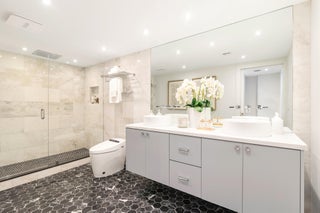 Experience breathtaking water views from this fully renovated residence, complete with a private balcony in one of Palm Beach Island's most prestigious intercoastal communities. This spacious 2-bedroom, 2-bath condo features a sleek, modern kitchen w custom made cabinetry with Ibiza white marble counters. All the kitchen appliances are Fisher & Paykel. There is the same custom cabinetry and marble in the 2 bathrooms w. Grohe fixtures and fancy toilets. The floors are beautiful English oak throughout. This was a full gut renovation with all new HVAC wiring, plumbing and full impact glass throughout. There is a large storage closet with a new LG washer and dryer. Residence 2773 has been completely reimagineda"move in and enjoy a turnkey lifestyle. The seller will cover all assessments