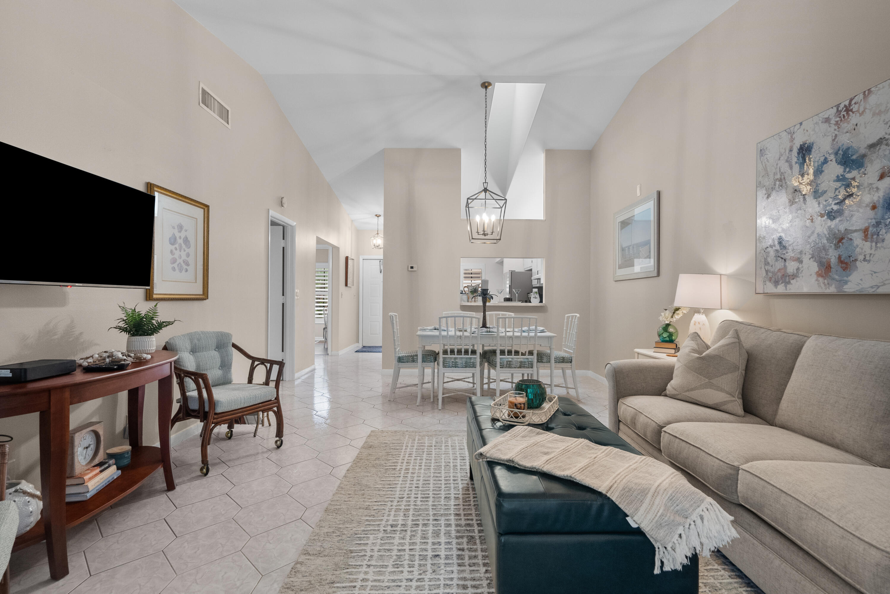 Rarely available 2BR/2BA villa in the heart of Palm City! This charming single-story home comes fully furnished and welcomes you with a private courtyard entry and a detached 1-car garage. All ages are welcome, and one small pet (under 25 lbs) is permitted. Enjoy a bright, sunny exposure and a private screened Florida room with tranquil preserve views--perfect for morning coffee or relaxing evenings. Interior features include smooth vaulted ceilings, plantation shutters, fresh paint, and an updated bathroom. Ideally situated directly across from the clubhouse, heated pool, and tennis courts, offering the ultimate in convenience. The community clubhouse also hosts a variety of social activities. Condo dues include: roof maintenance, building insurance, lawn & landscaping, basic cable, gated