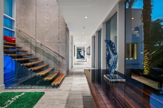 Steps from the beach, this custom estate, built in 2018, is designed with floor-to-ceiling impact glass for a light, bright ambience and a seamless connection to nature. An open floor plan configuration places the family room and kitchen adjacent to the pool and patio. Attractive features include a first-floor primary suite, a second-floor VIP suite, and guest bedroom that could serve as a club room.dramatic main gallery is enclosed in glass, offering serene views of the beautifully landscaped front yard and side gardens. In the main wing in an open-floor-plan configuration, the family room and dining room are open to the center-island chef's kitchen, finished with contemporary cabinetry, stainless-steel professional-grade appliances and a wall of sliding doors that lead to the loggia. Also in this wing are a guest bedroom suite with a private patio, a powder room and laundry. Set apart in a wing of its own is the stunning primary suite. It comprises a large bedroom with sliding doors that open to the side yard, two custom-fitted walk-in closets, and a magnificent stone-clad bathroom with dual sinks, a huge shower and a lounge tub. On the second floor in a split-bedroom plan, the VIP bedroom suite is placed separately from the other guest bedrooms. Also, this residence has easy beach access; it is integrated with Smart Home technology, and windows and doors throughout are impact-glass. PROPERTY: Across the street from the ocean on an oversized beautifully landscaped corner lot, the driveway circles around an oasis to the two-car garage and spectacular entry adjacent to a tranquil water feature. Inviting indoor/outdoor entertaining in the hedged back yard, the covered loggia, wrapped within an expansive deck, overlooks the 55-foot pool with a sun shelf and a stone feature wall with soothing fountain sprays. Additional amenities for easy living are the summer kitchen/barbeque area, easily accessible from the kitchen, and the outdoor shower, convenient when returning from the beach. DISCLAIMER: Information published or otherwise provided by the listing company and its representatives including but not limited to prices, measurements, square footages, lot sizes, calculations, statistics, and videos are deemed reliable but are not guaranteed and are subject to errors, omissions or changes without notice. All such information should be independently verified by any prospective purchaser or seller. Parties should perform their own due diligence to verify such information prior to a sale or listing. Listing company expressly disclaims any warranty or representation regarding such information. Prices published are either list price, sold price, and/or last asking price. The listing company participates in the Multiple Listing Service and IDX. The properties published as listed and sold are not necessarily exclusive to listing company and may be listed or have sold with other members of the Multiple Listing Service. Transactions where listing company represented both buyers and sellers are calculated as two sales. "No payments made until title passes" Some affiliations may not be applicable to certain geographic areas. If your property is currently listed with another broker, please disregard any solicitation for services. Information published or otherwise provided by seller, listing company or its representatives is deemed reliable but are not guaranteed and subject to errors, omissions, or changes without notice. Copyright 2025 by the listing company. All Rights Reserved.