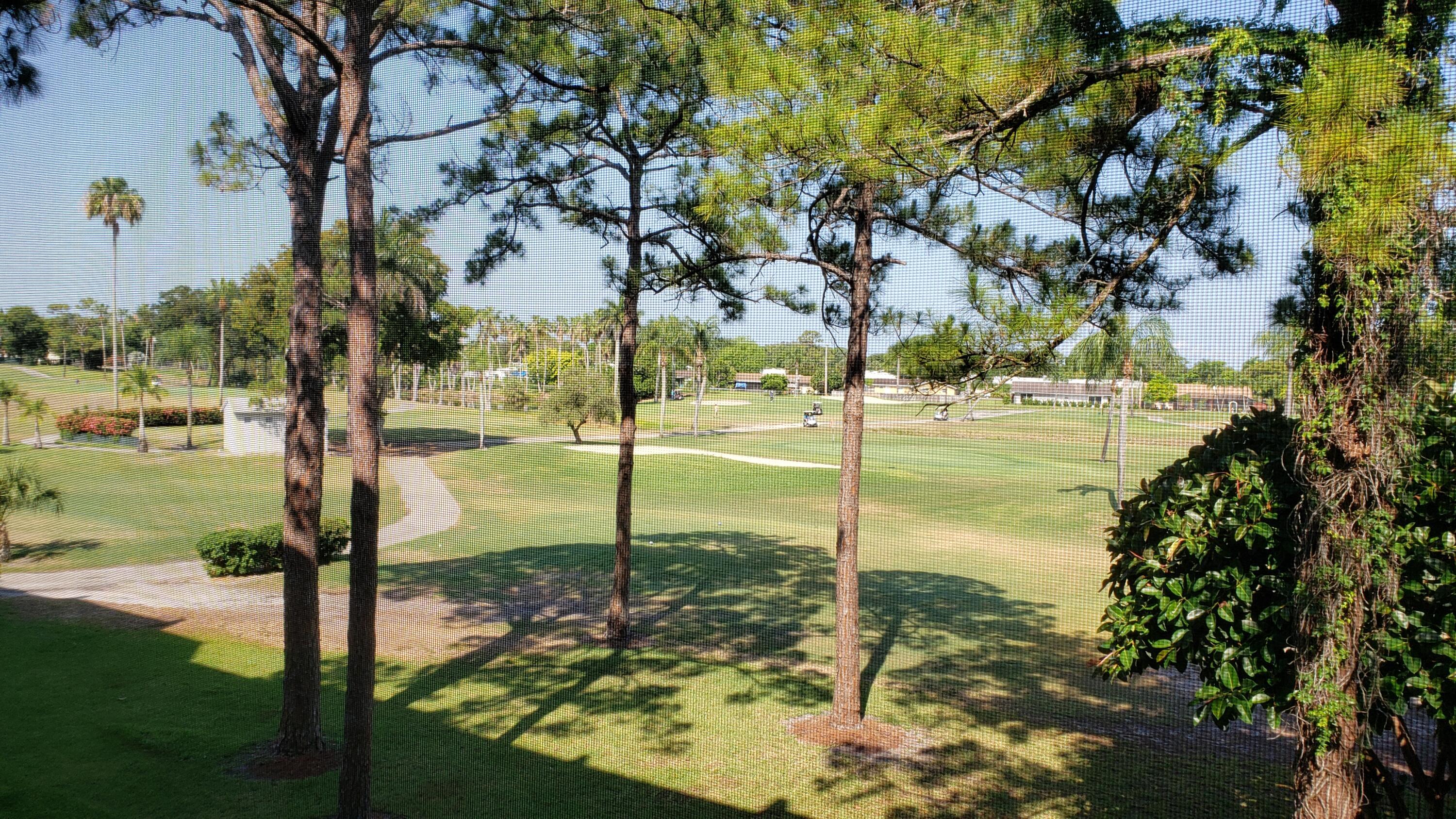 Beautiful bright condo with fantastic views of the golf course. Updated kitchen and baths. Tastefully furnished just bring your personal items. Large screened balcony. There are newly installed hurricane windows for your protection. Washer & Dryer in unit. Clubhouse has many activities, cafe' and much more. You are close to the clubhouse, pools, golf, entertainment , shopping and more. See it today. Enjoy the Florida lifestyle at it's best!