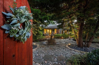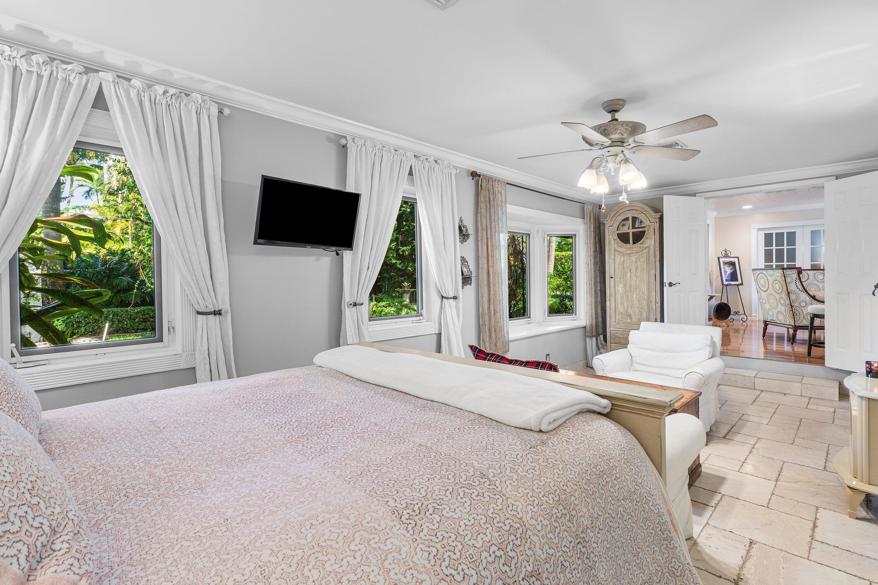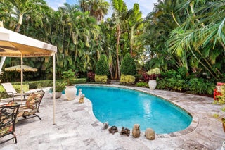 Tucked behind an arched gate on one of Palm Trail's most coveted streets - just two blocks from vibrant Atlantic Avenue and only steps from the Intracoastal - this charming single-story residence with attached guest house sits on a beautifully landscaped lot just shy of 14,000 square feet (approximately 100' x 140'). This is an exceptional offering in the heart of Delray Beach.Surrounded by lush, storybook gardens, the property offers a true sense of retreat with winding flagstone paths and mature tropical plantings. A meandering stone walkway leads to the main entrance and a well-planned split floor plan featuring two spacious primary suites - one with an oversized dressing room/nursery - and a versatile third bedroom ideal as a home office or guest room.Inside, a welcoming entry foyer opens to a warm and inviting living space, highlighted by a wood-burning fireplace and a well-appointed kitchen with generous prep space and storage. Step outdoors to discover the true magic of this home: tranquil garden pathways, a large swimming pool, and a cozy fire pit tucked beneath the palms. The home is perfect for entertaining or relaxing under the stars. The expansive lot offers rare breathing room, multiple outdoor gathering areas, and complete privacy. Completing the property is a charming attached guest house with its own covered patio, kitchenette, and full bath - ideal for extended stays, guests, or use as a creative studio. Located on NE 2nd Street - a quiet, dead-end lane with virtually no through traffic - this distinctive property offers the best of both worlds: secluded, peaceful living just a short stroll from Delray's renowned dining, shopping, and beachfront lifestyle.