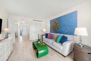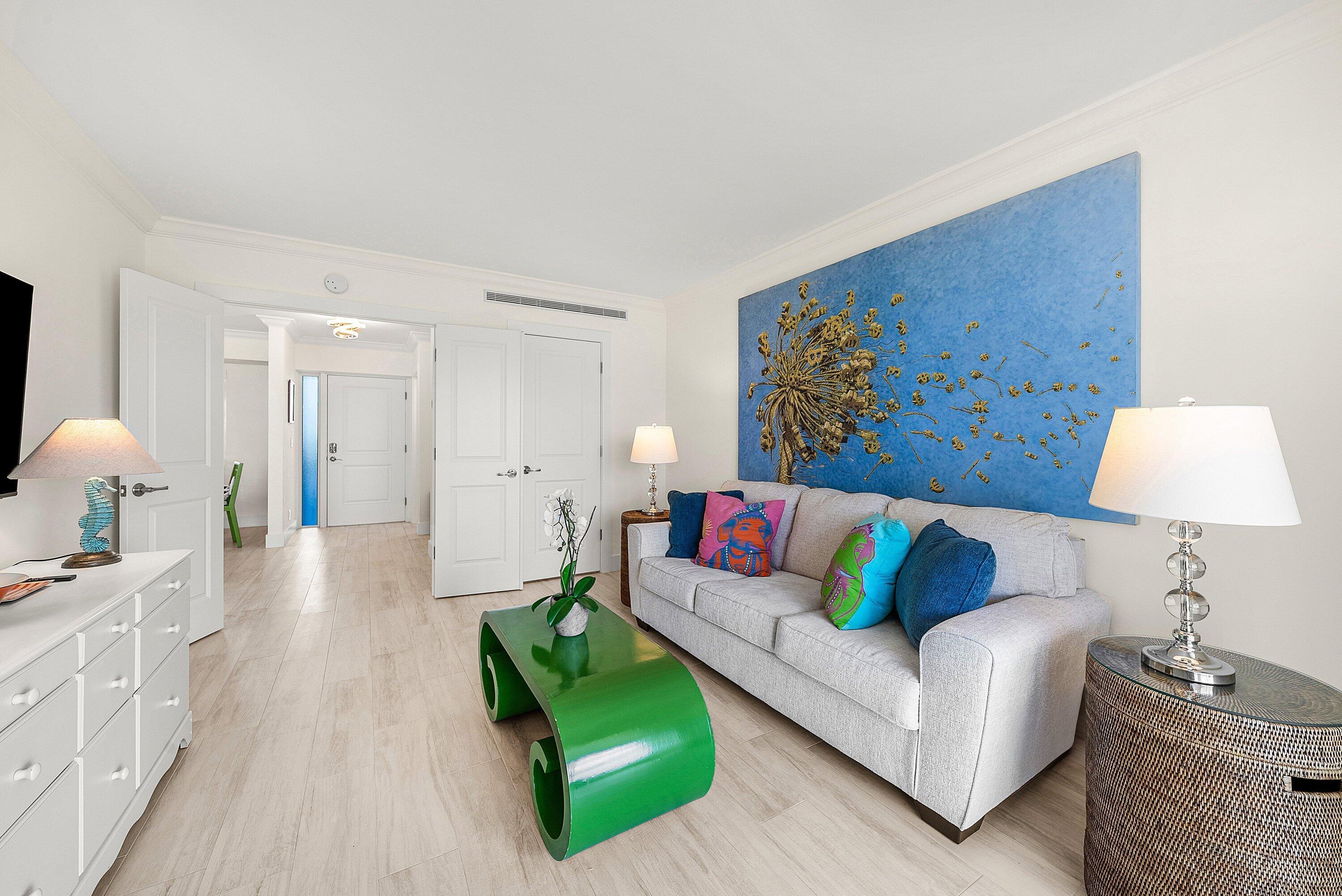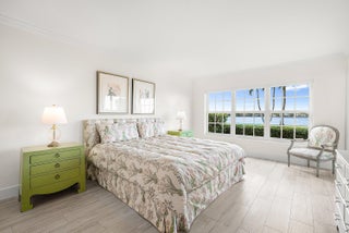 Turn-key, renovated 2-bedroom, 2-bath condo with interiors designed by the Fascinating Hildegarde ''Hillie'' Mahoney with sweeping Intracoastal Waterway and sunset views--your own escape above the water. Floor-to-ceiling hurricane doors open to a breezy lanai suited for unhurried mornings and golden-hour evenings. Inside, a modern layout offers a fully stocked kitchen, spa-style baths, and custom closets. The boutique building includes two pools and lush grounds that feel quietly resort-like. Minutes from the beach, Eau Resort & Spa, the Four Seasons, Publix, Phipps Ocean Park, the PB Tennis Center, and the PB Par 3 Golf Course, and a short drive to Palm Beach central, downtown West Palm Beach, and Atlantic Ave. A polished coastal retreat close to everything.
